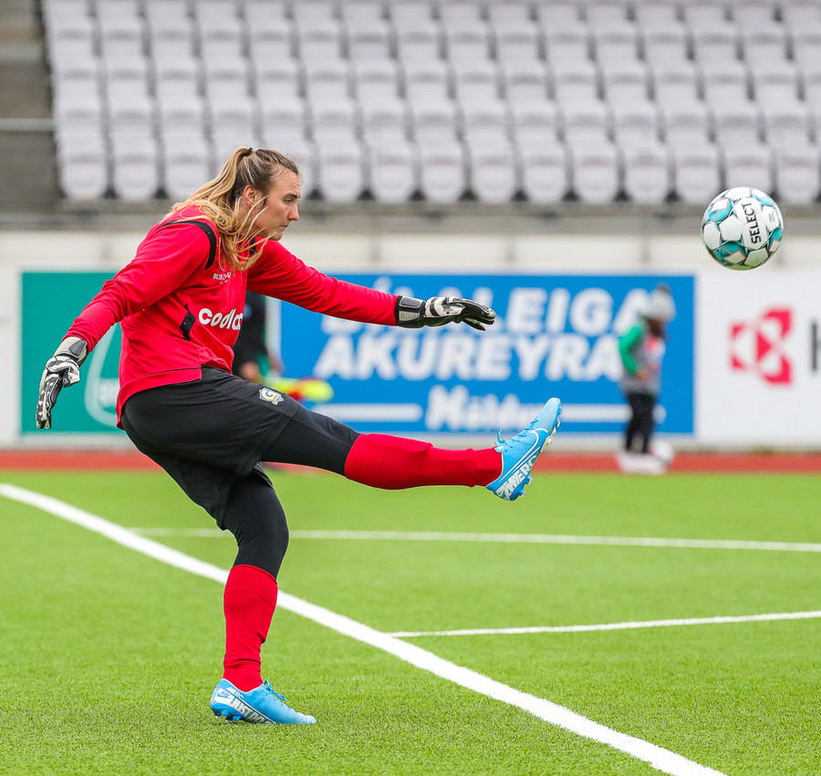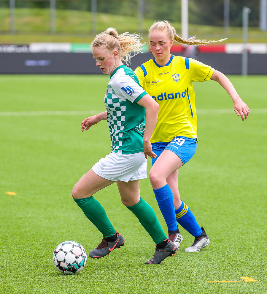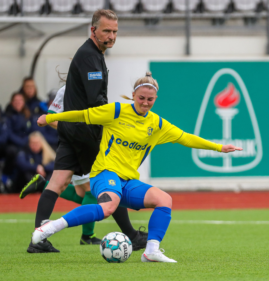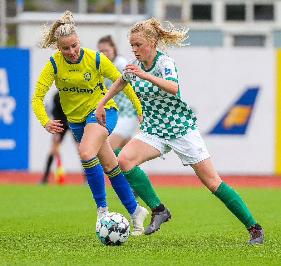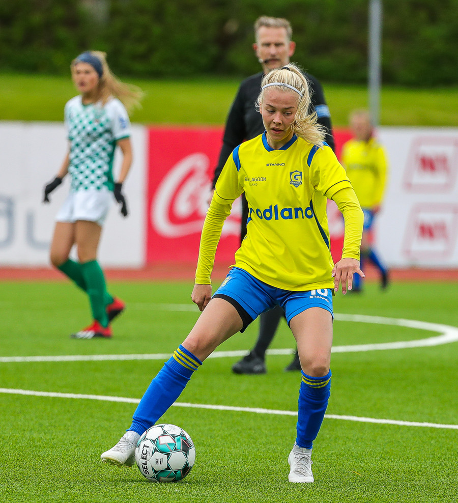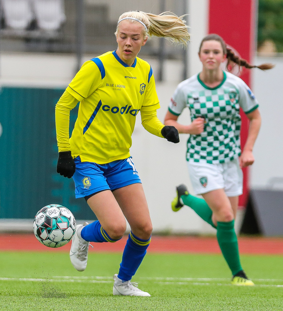 Skemmtilegur samleikur hjá Þórdísi og Björk sem endar með skoti Þórdísar fyrir utan teig en beint á markið.