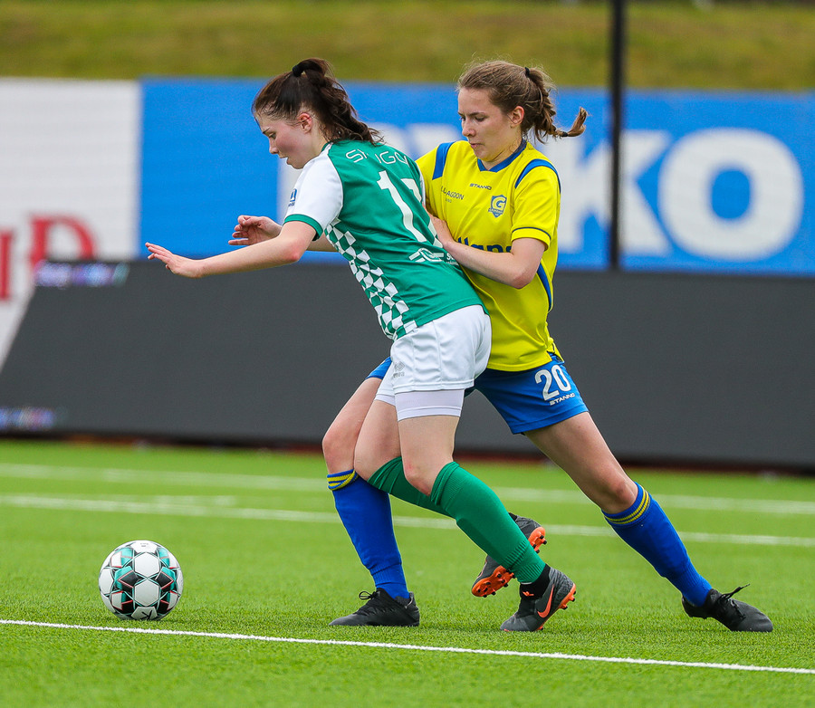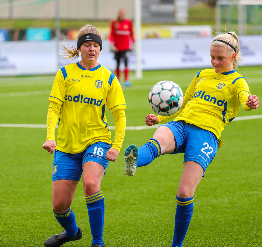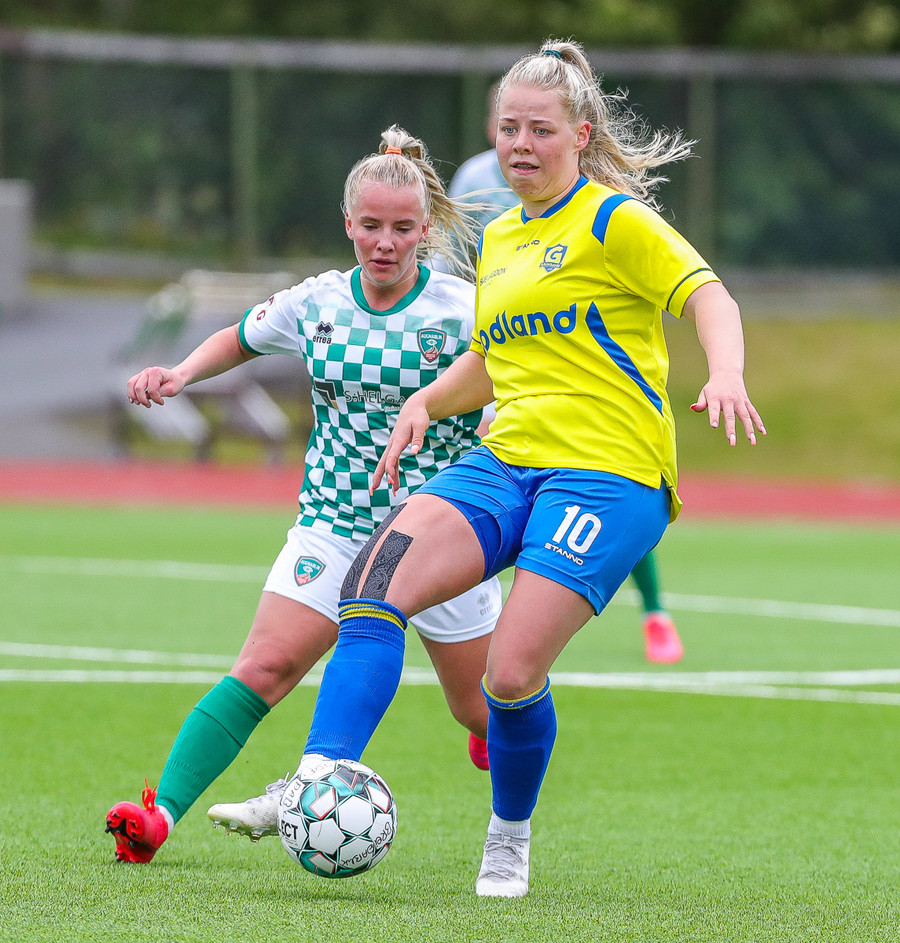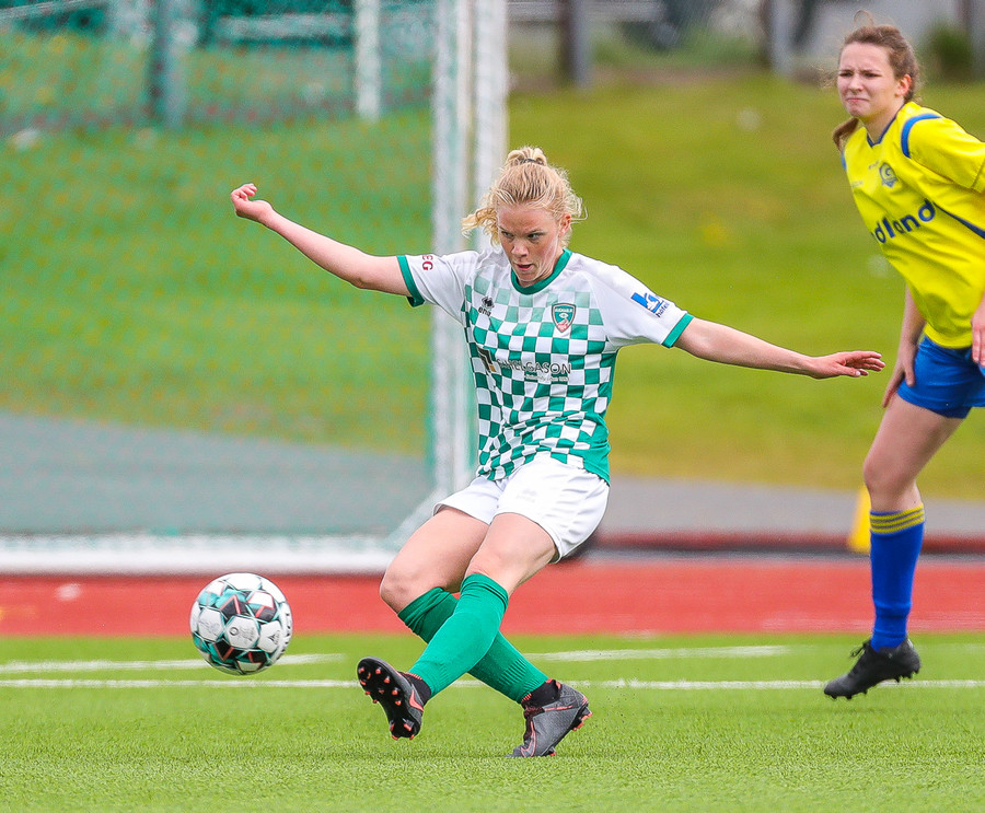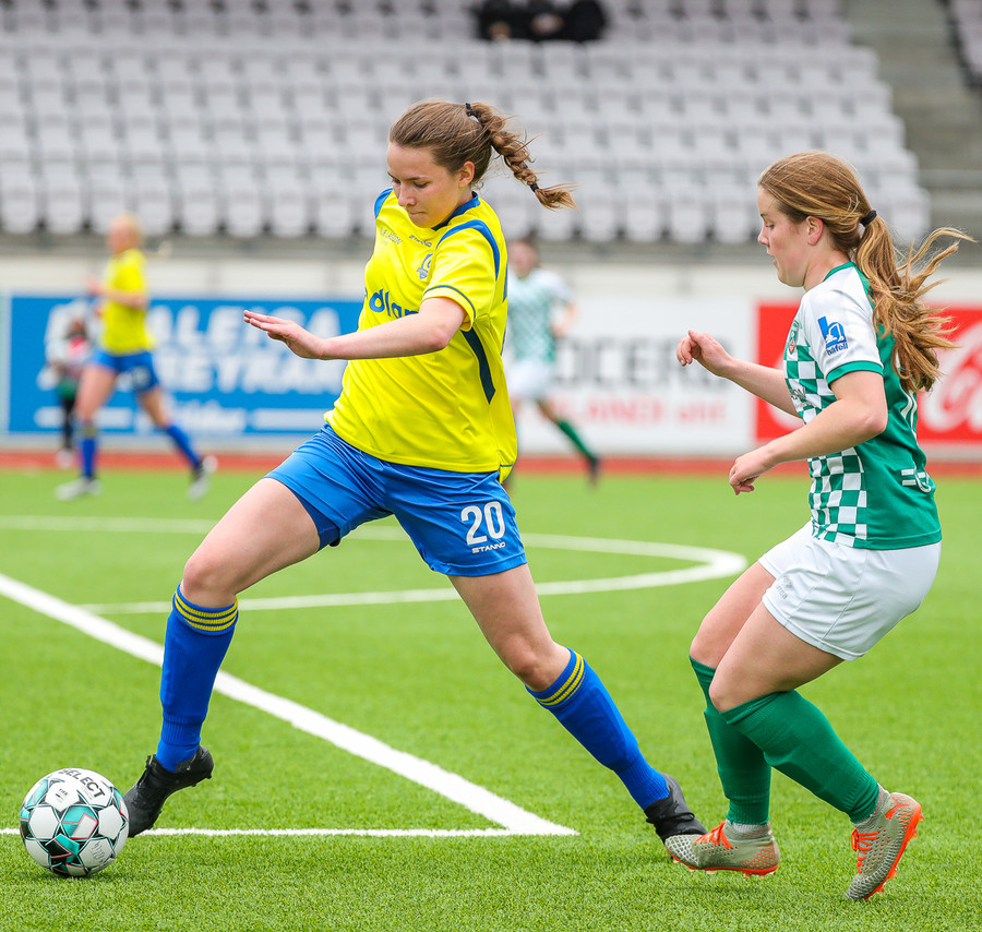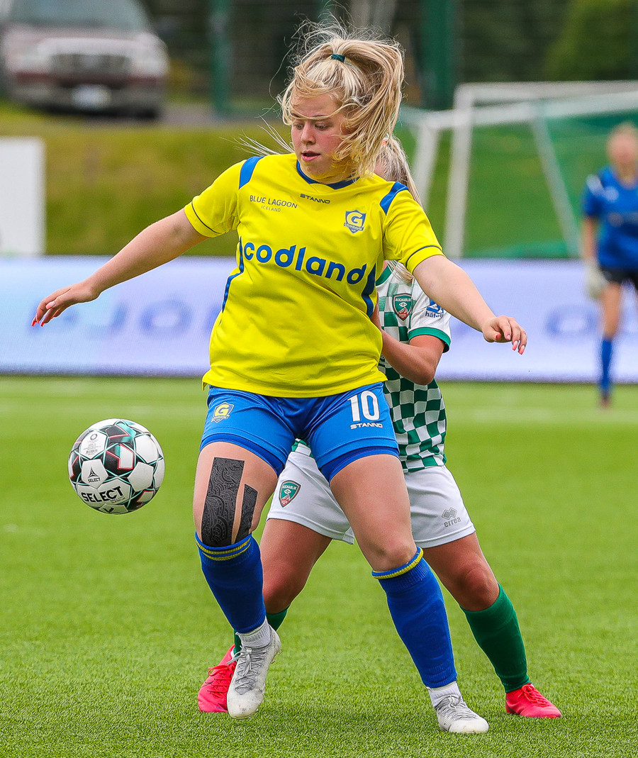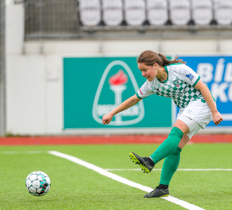 Skemmtilegur samleikur hjá Þórdísi og Björk sem endar með skoti Þórdísar fyrir utan teig en beint á markið.