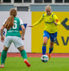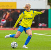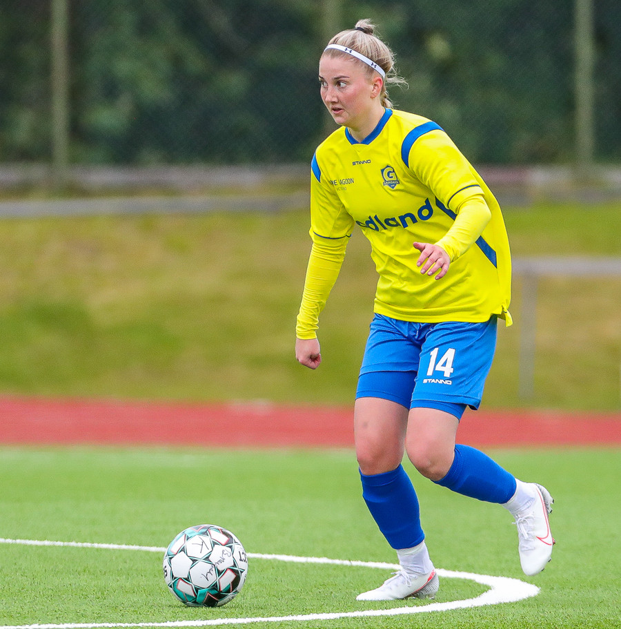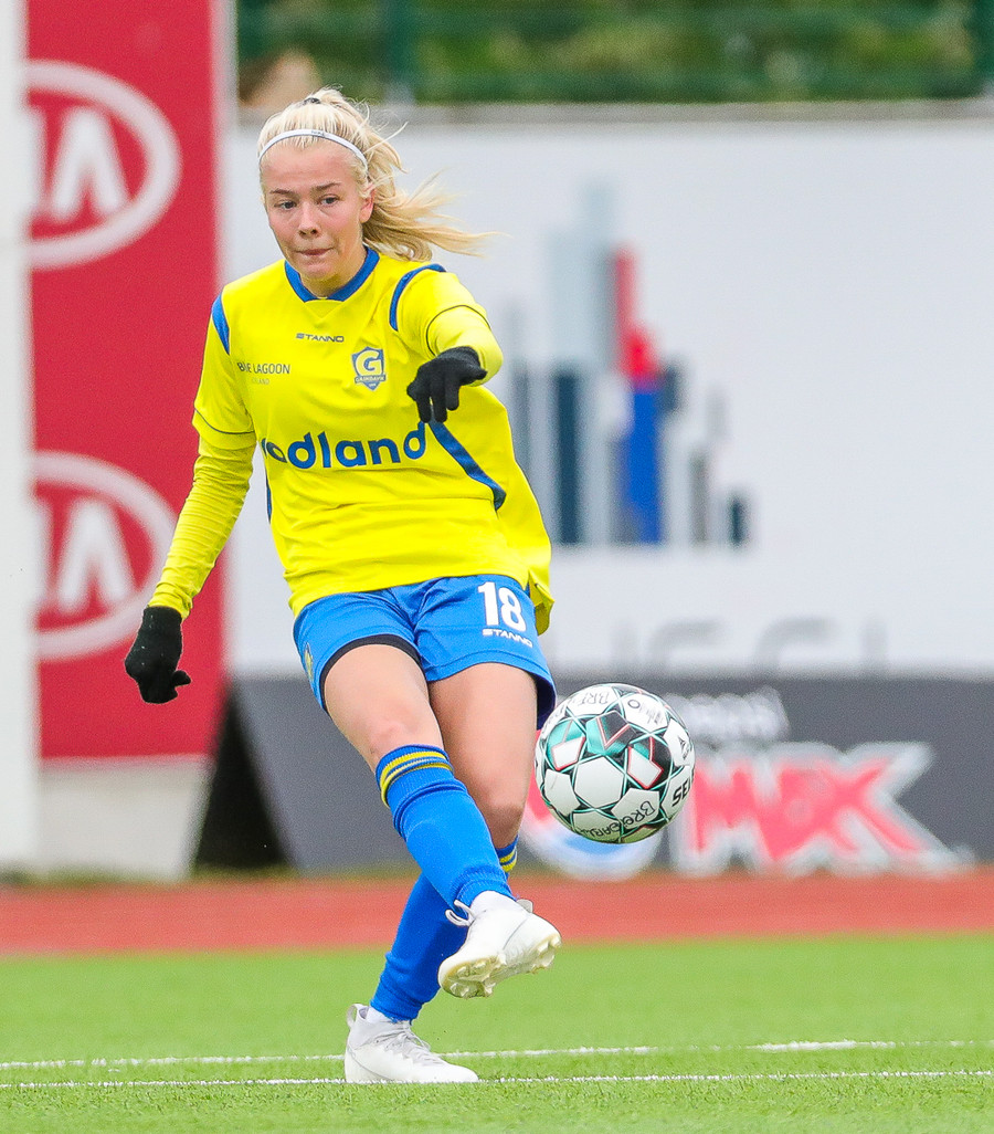 Birta laumar boltanum inn fyrir á Björk sem er aftur alein og leggur hann í markið.