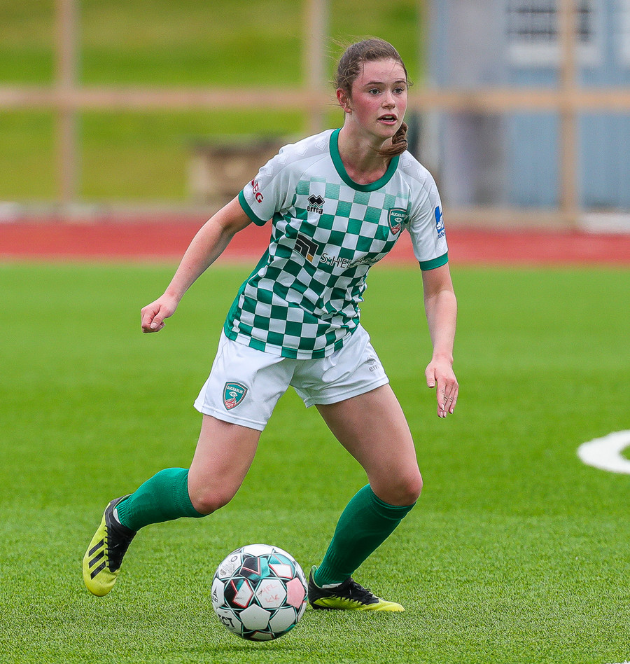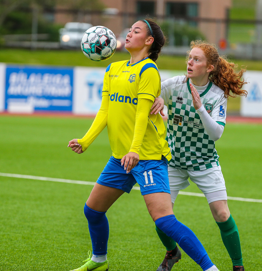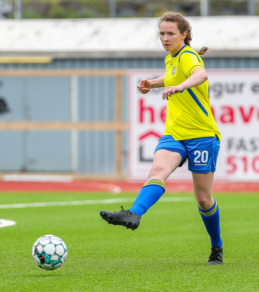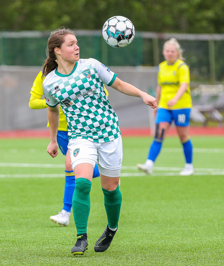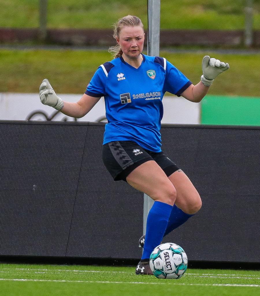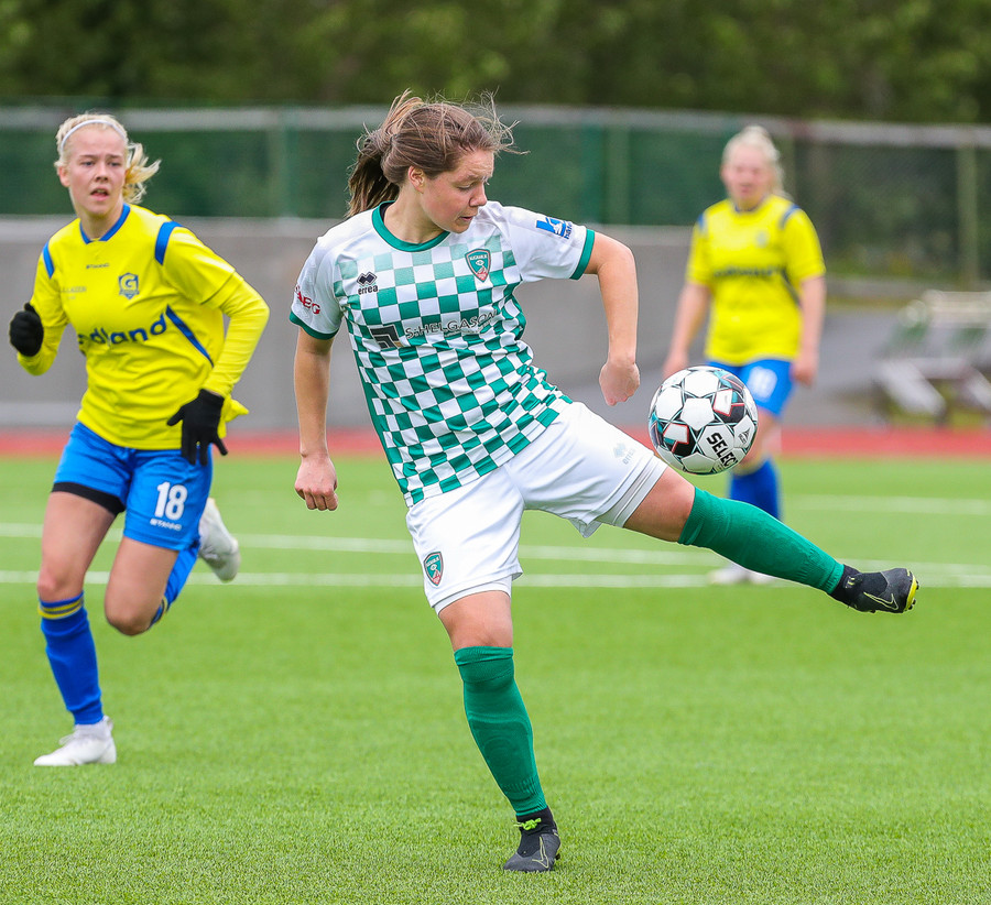 Ísafold tekur aukaspyrnu 35 metrum frá marki. Heimastúlkur stilla sér upp á fjærstönginni eins og þær ætli að fá háa fyrirgjöf en hún rennir honum í svæði á Þórdísi Kötlu sem á skot beint á markið.