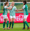 Vigdís kemst aftur ein í gegn. Í stað þess að skjóta sendir hún á Birnu sem nær ekki valdi á boltanum. Dauðafæri.