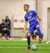 Steven Lennon fær boltann á lofti inn í teig og tekur volley en beint á Sigurð í marki HK