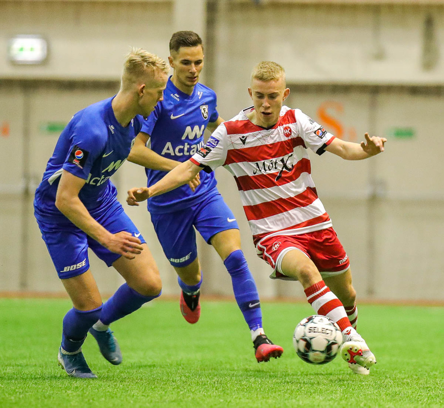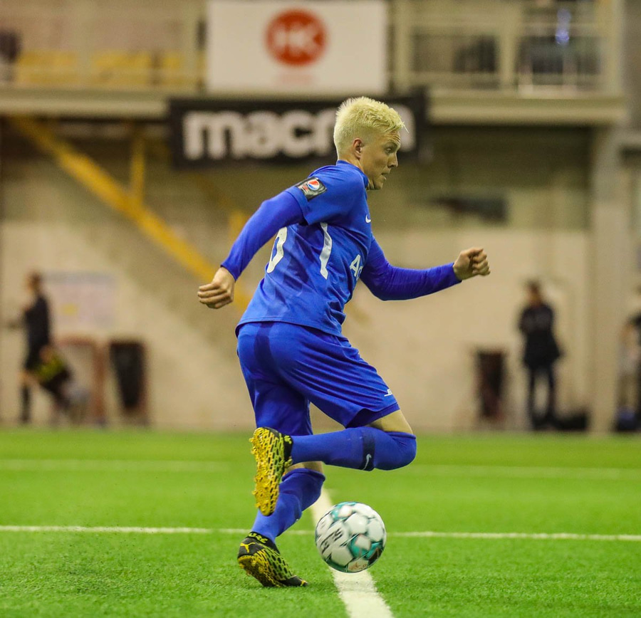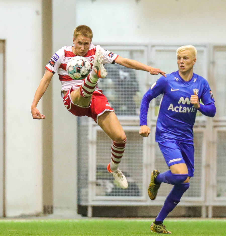 Leifur Andri með frábæran bolta á Alexander Frey inn í teig en honum tekst ekki að taka nógu vel á móti honum