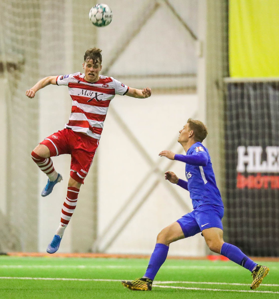 Daníel Hafsteins með aukaspyrnu frá vinstri inn á teig og Björn Daníel á flottan skalla en rétt framhjá