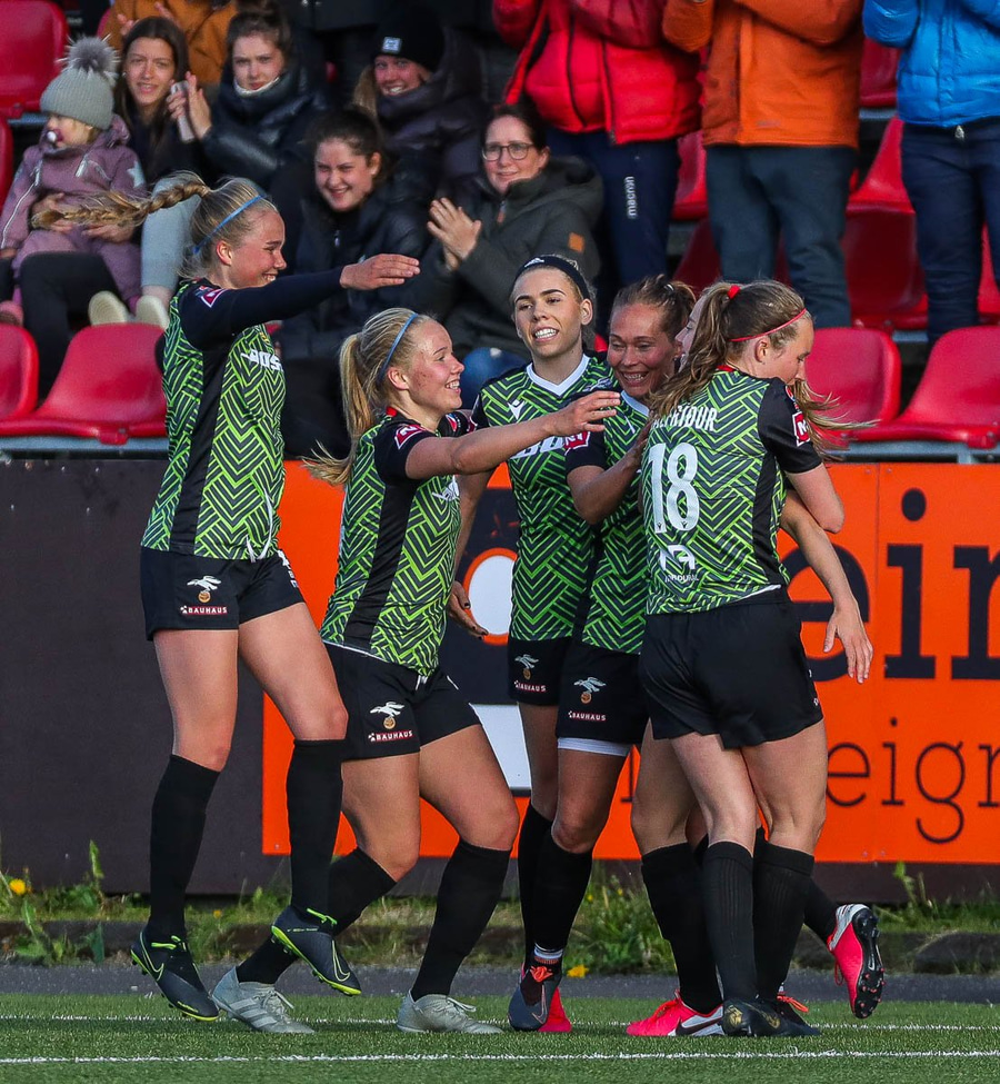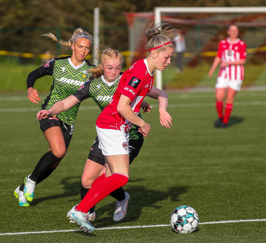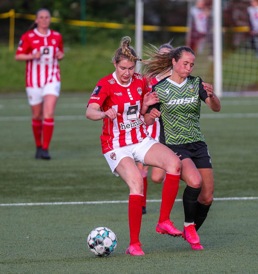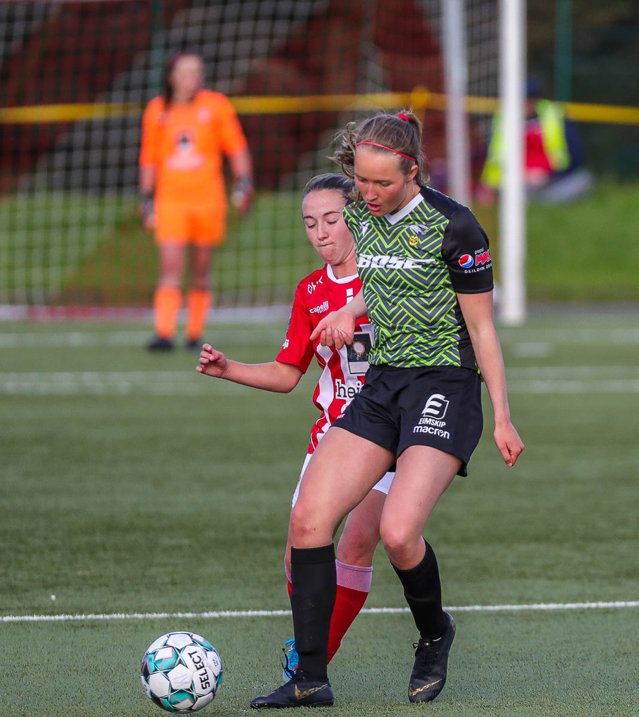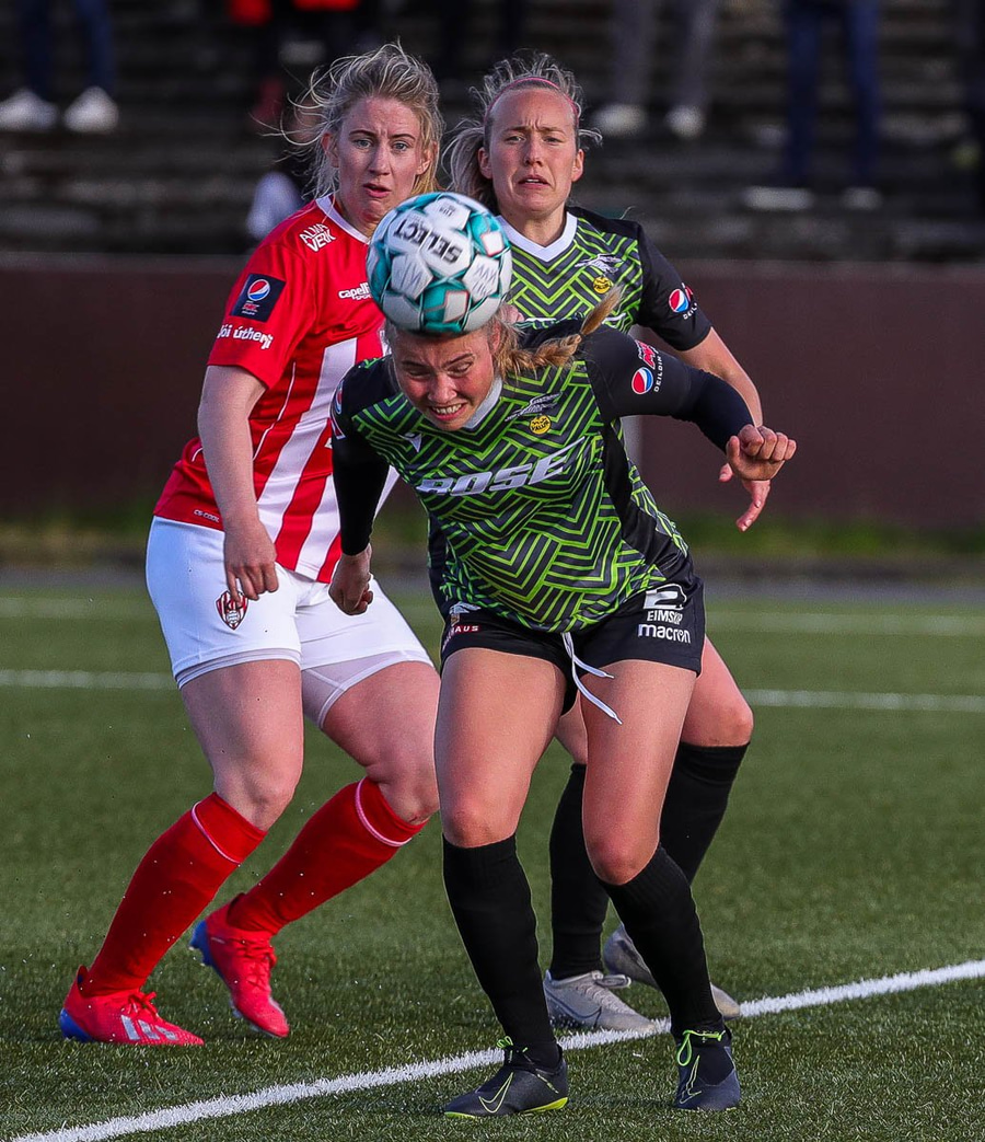 Það er spenna í þessu núna og Þróttarar setja pressu eftir að atvikið umdeilda. Laura Hughes og Stephanie eru báðar að sýna skemmtilega takta og reyna að búa eitthvað til.