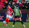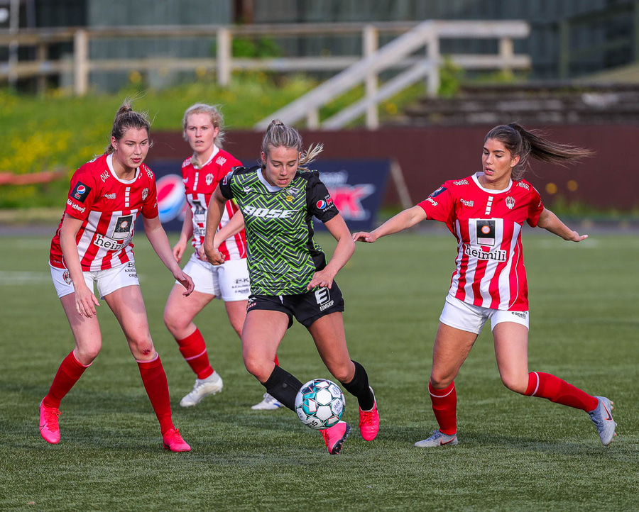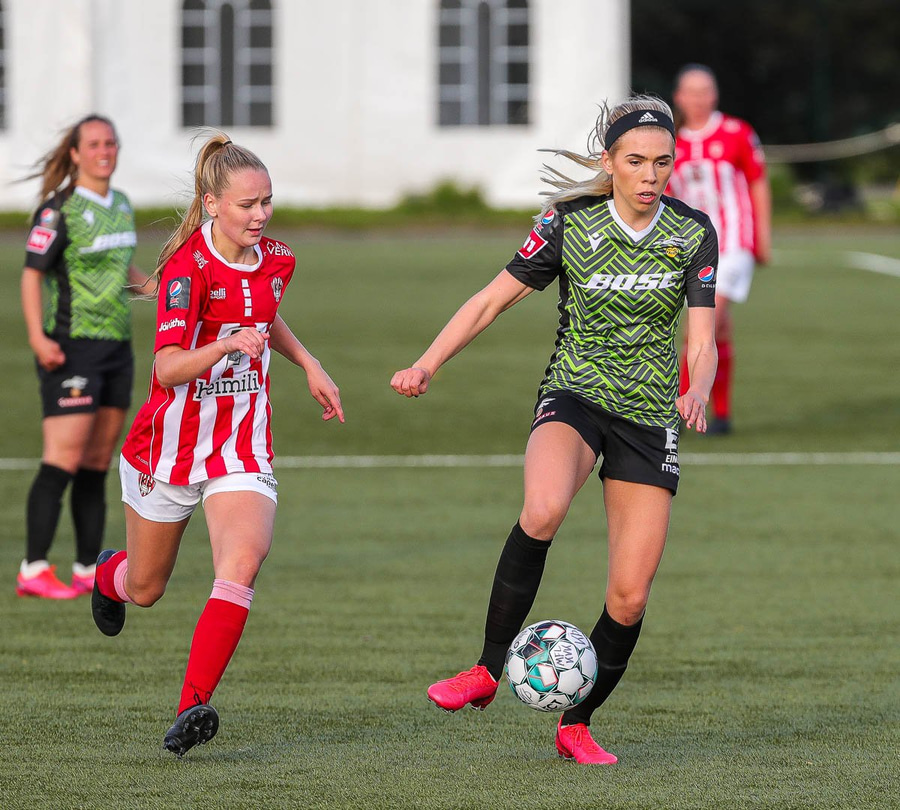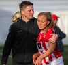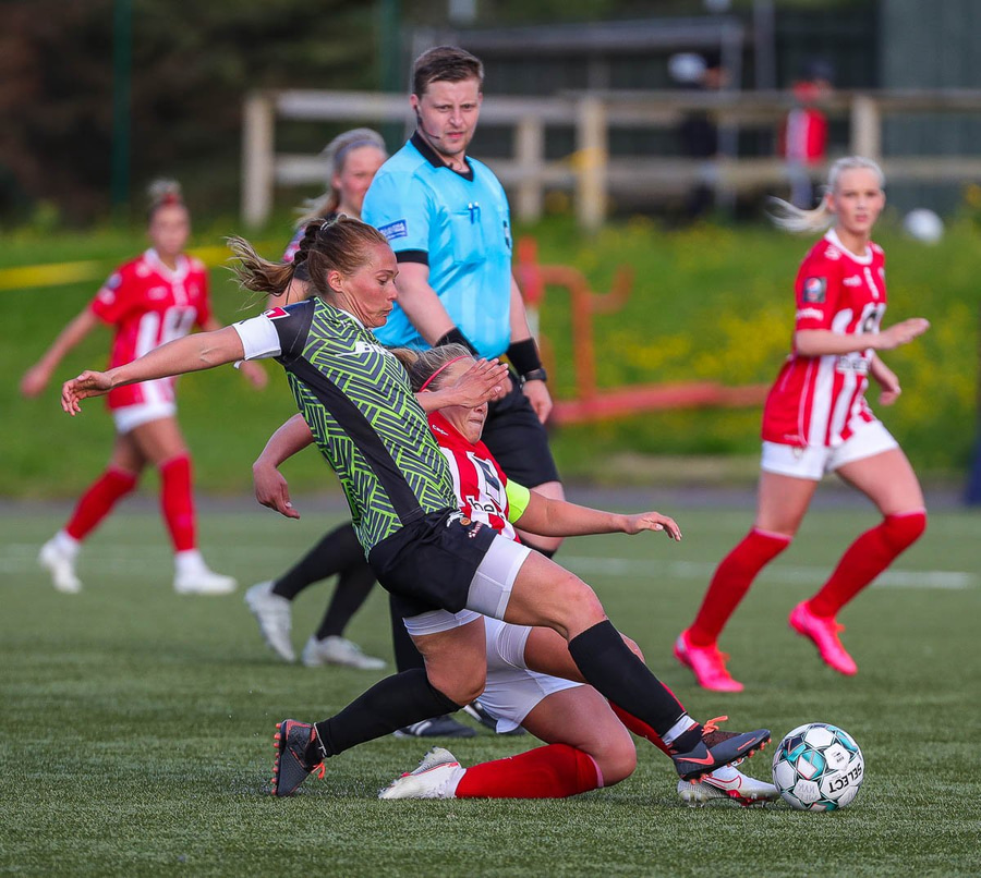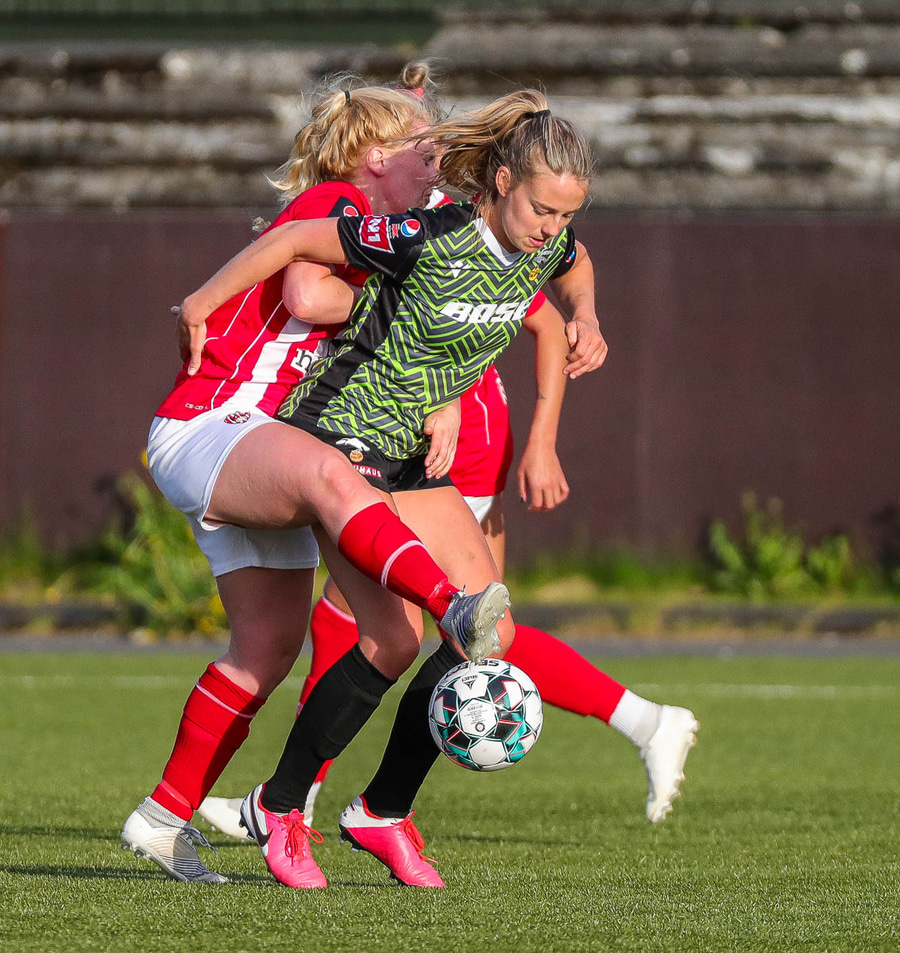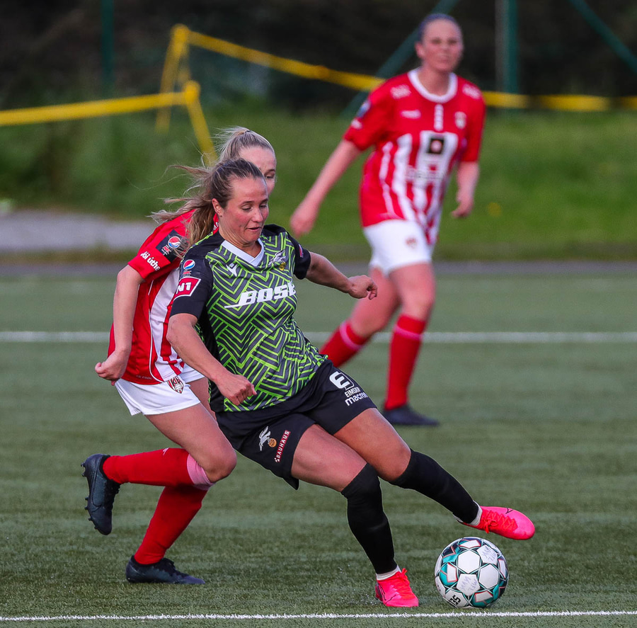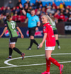 Það er spenna í þessu núna og Þróttarar setja pressu eftir að atvikið umdeilda. Laura Hughes og Stephanie eru báðar að sýna skemmtilega takta og reyna að búa eitthvað til.