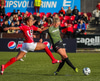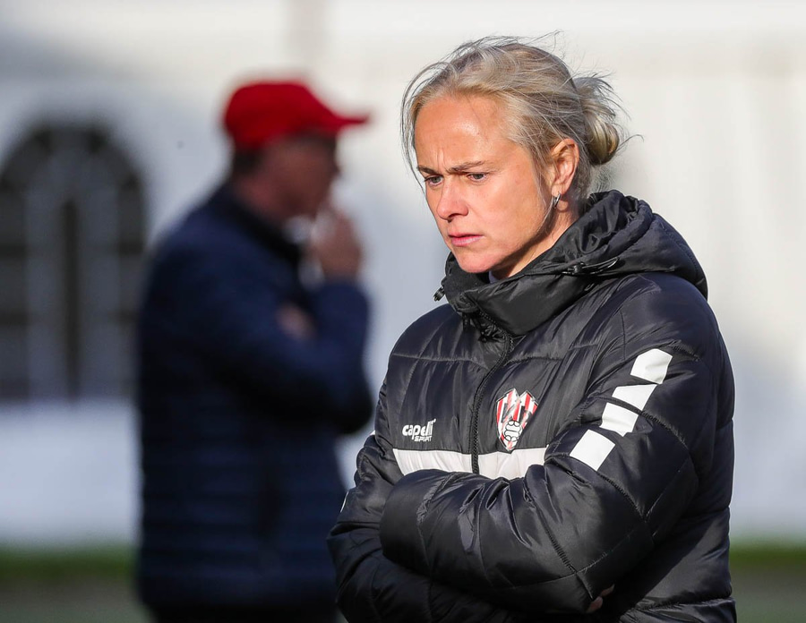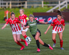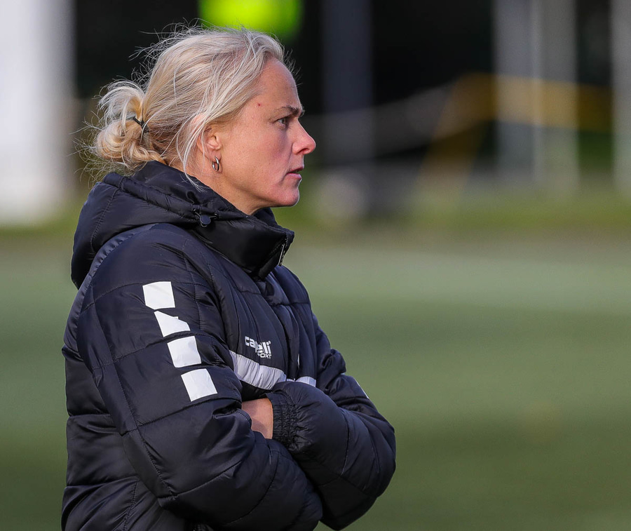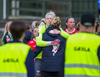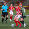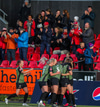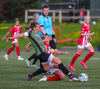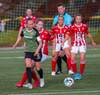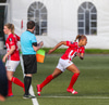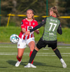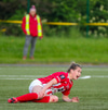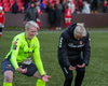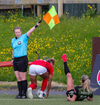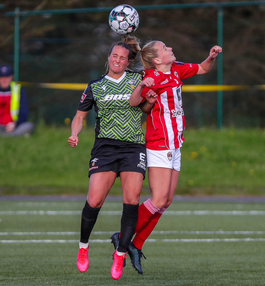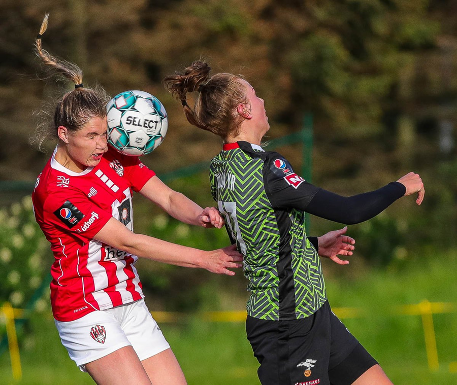 Þetta var fullharkalegt hjá Margréti. Keyrir Guðnýju niður í baráttu úti í vinstra horni. Guðný liggur eftir. Margrét sleppur við spjald.