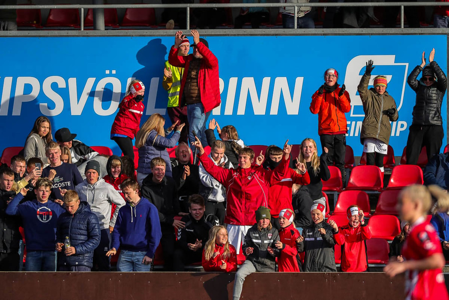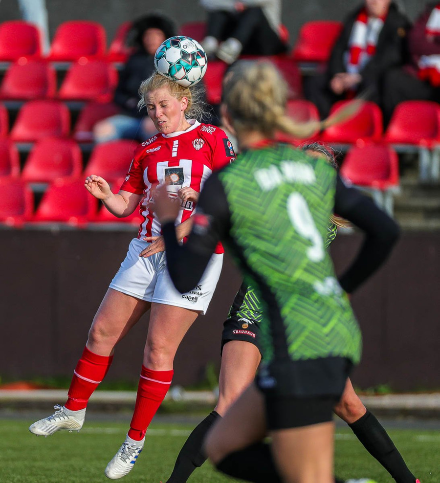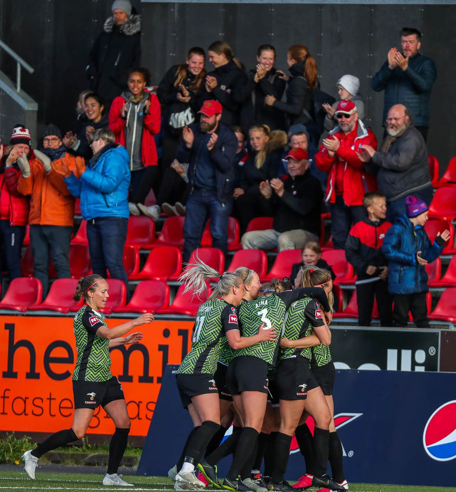 Hún er nýkomin inná og tvöfaldar forystu Vals með góðum skalla eftir hornspyrnu Fanndísar.