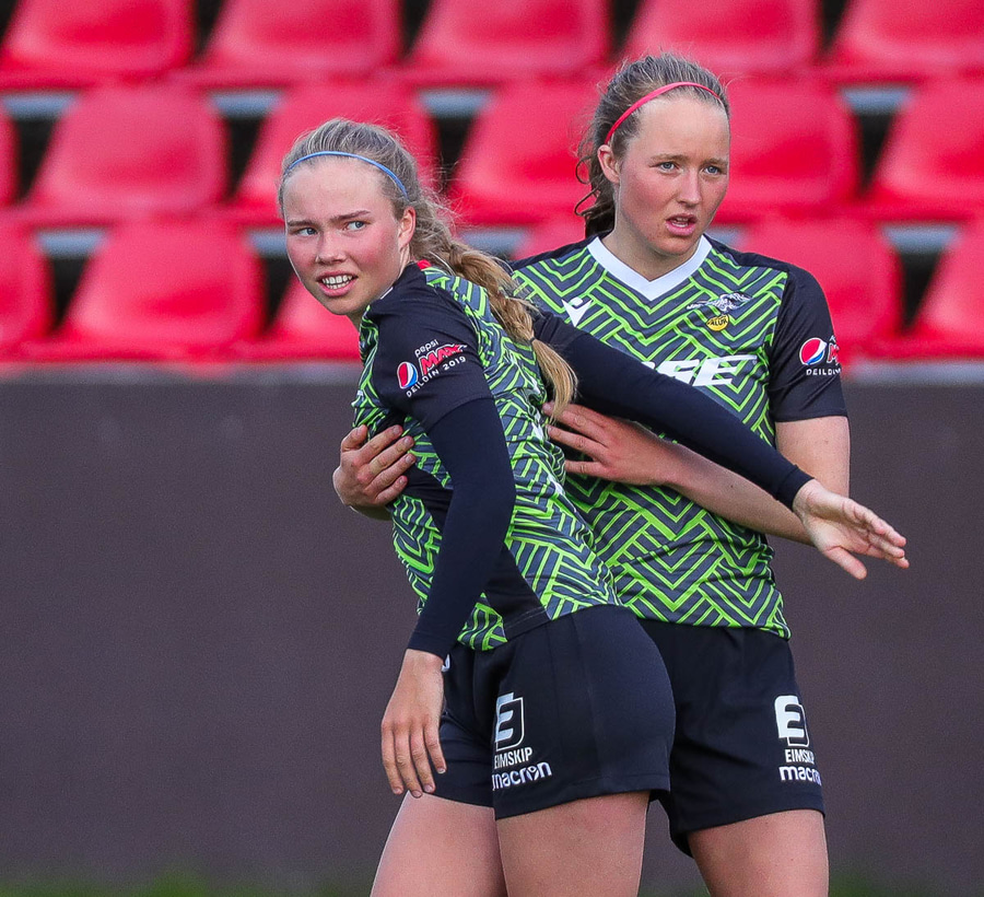 Diljá er að koma sterk inn hérna. Lék laglega meðfram endalínunni áður en hún lagði boltann út á Hlín sem var ein með opið mark fyrir framan sig á markteig.