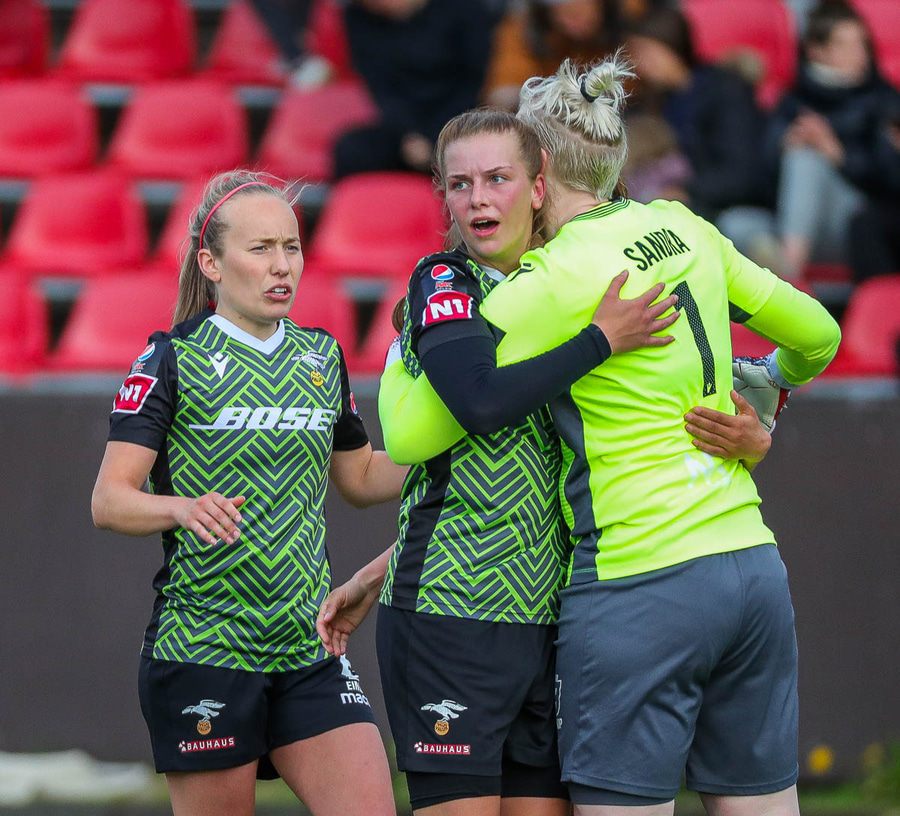 Arna spilar til baka á Söndru. Linda Líf eltir boltann en Sandra hikar. Linda nær því til hans, kemst ein gegn Söndru og klárar vel framhjá henni.