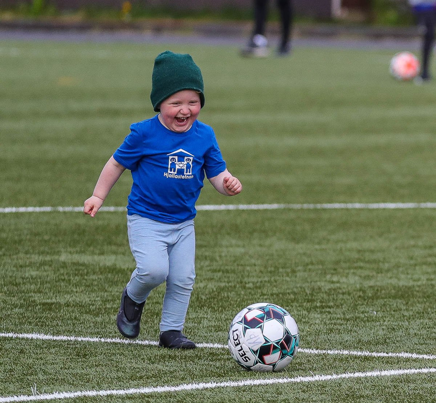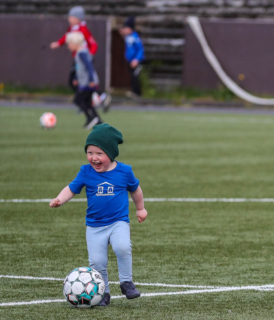 Nú fer fjörið alveg að hefjast. Liðin hafa lokið upphitun. Geggjað fótboltaveður í hjarta Reykjavíkur.