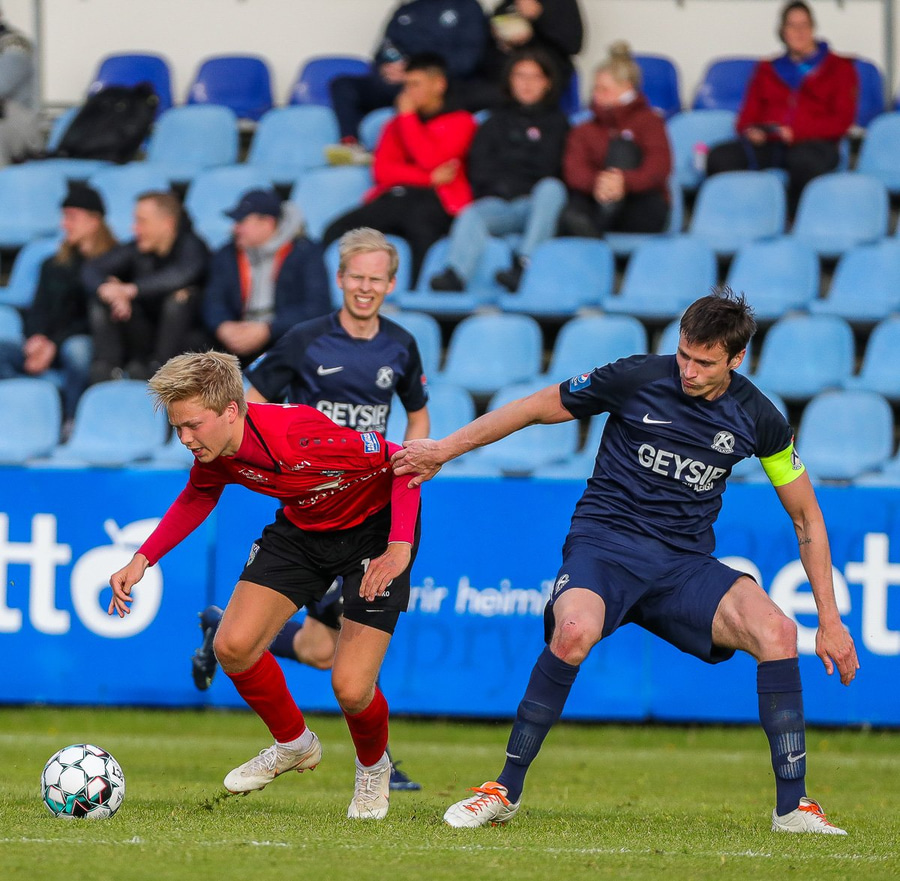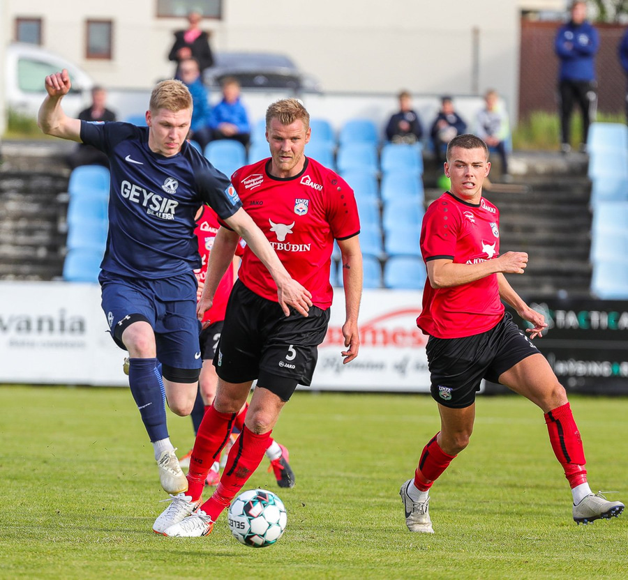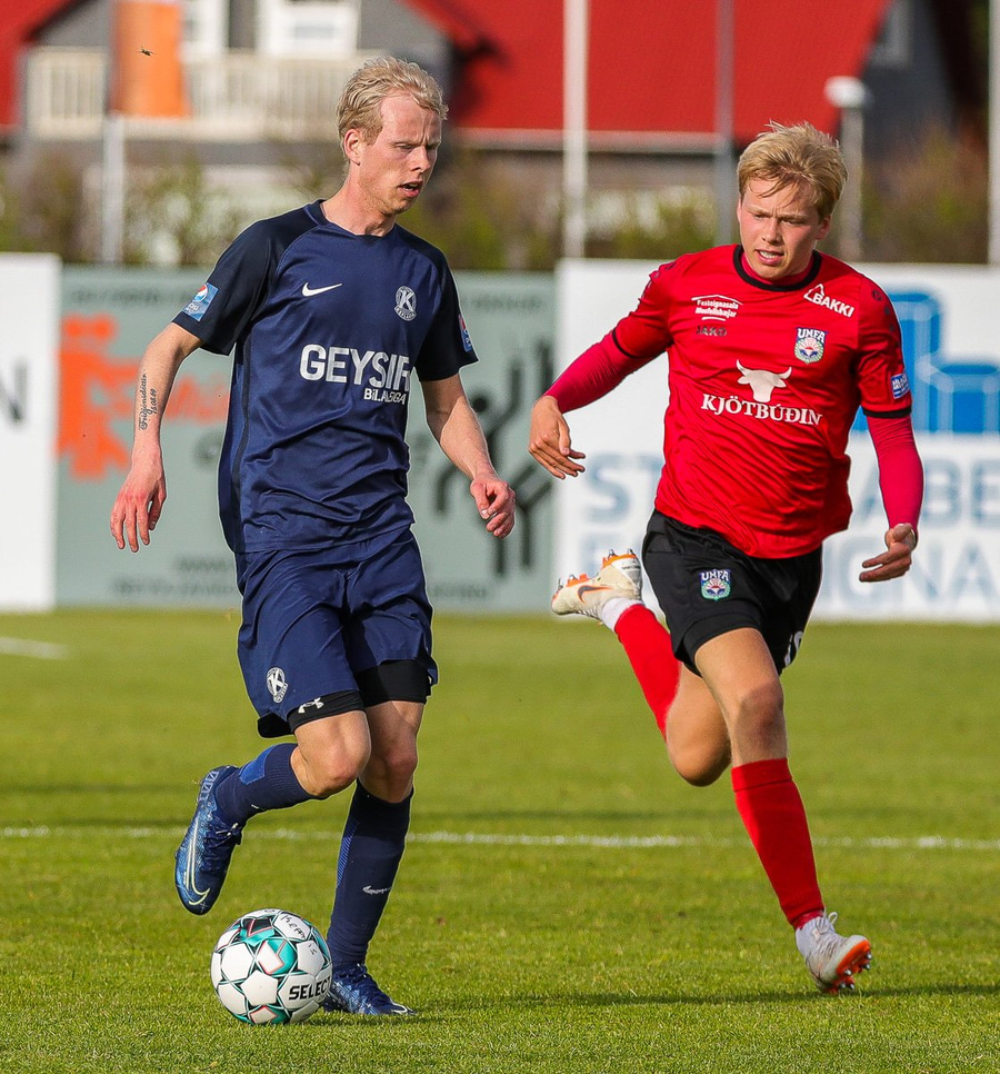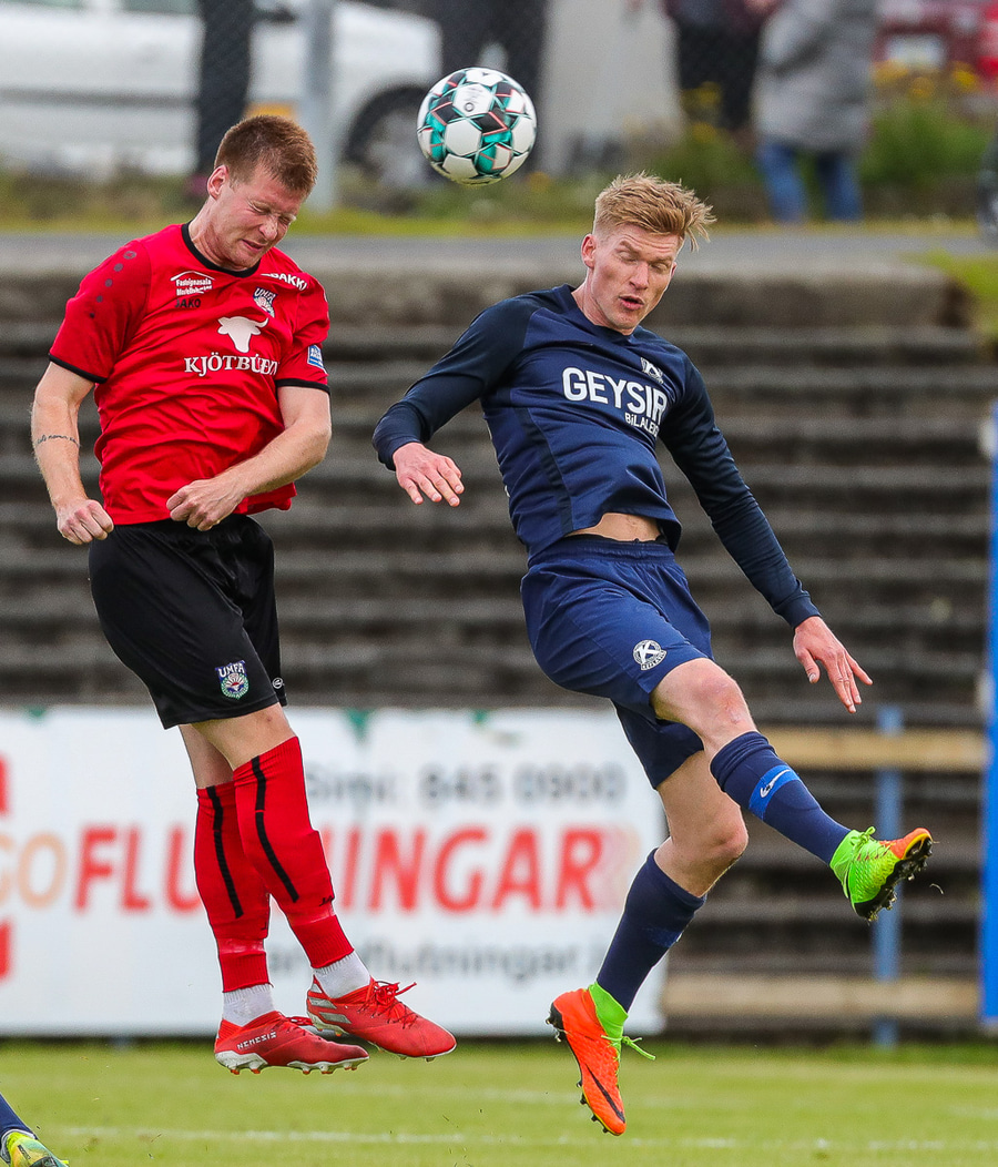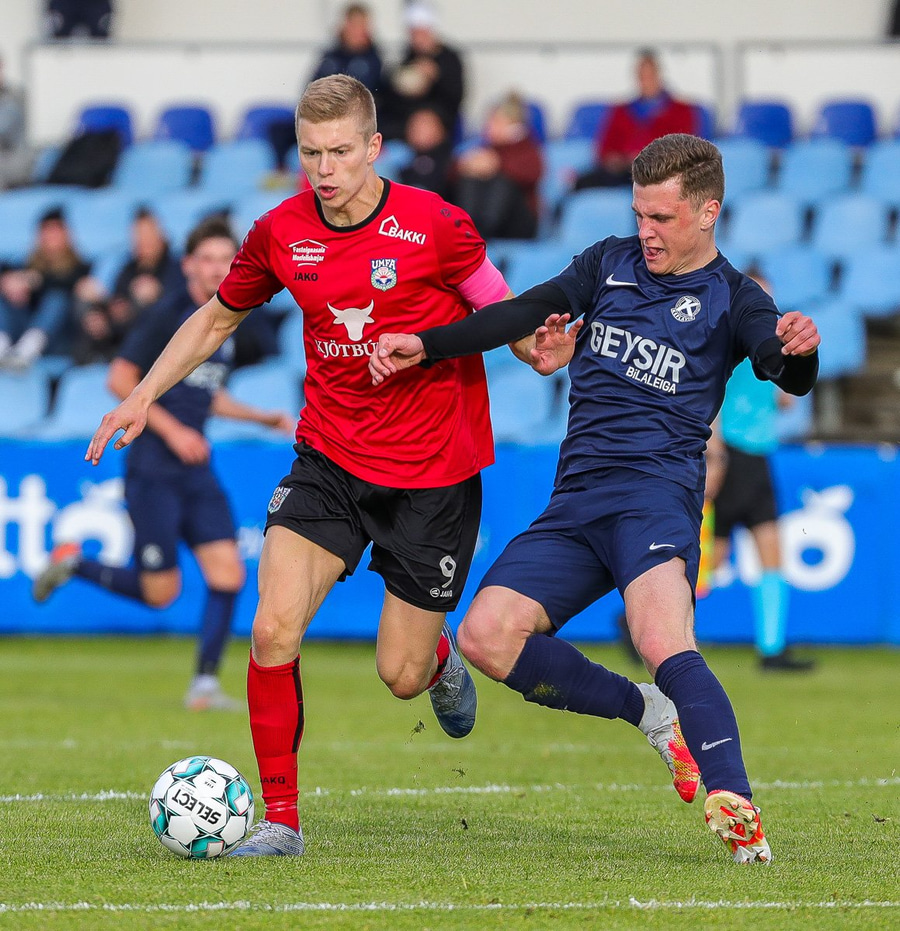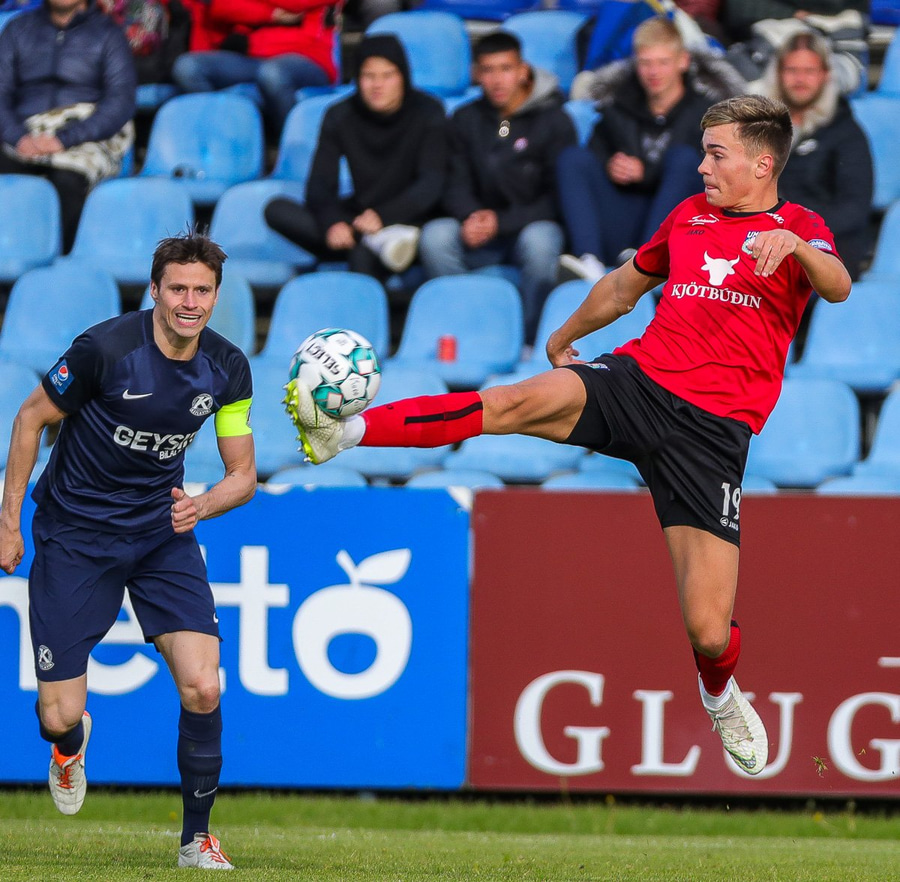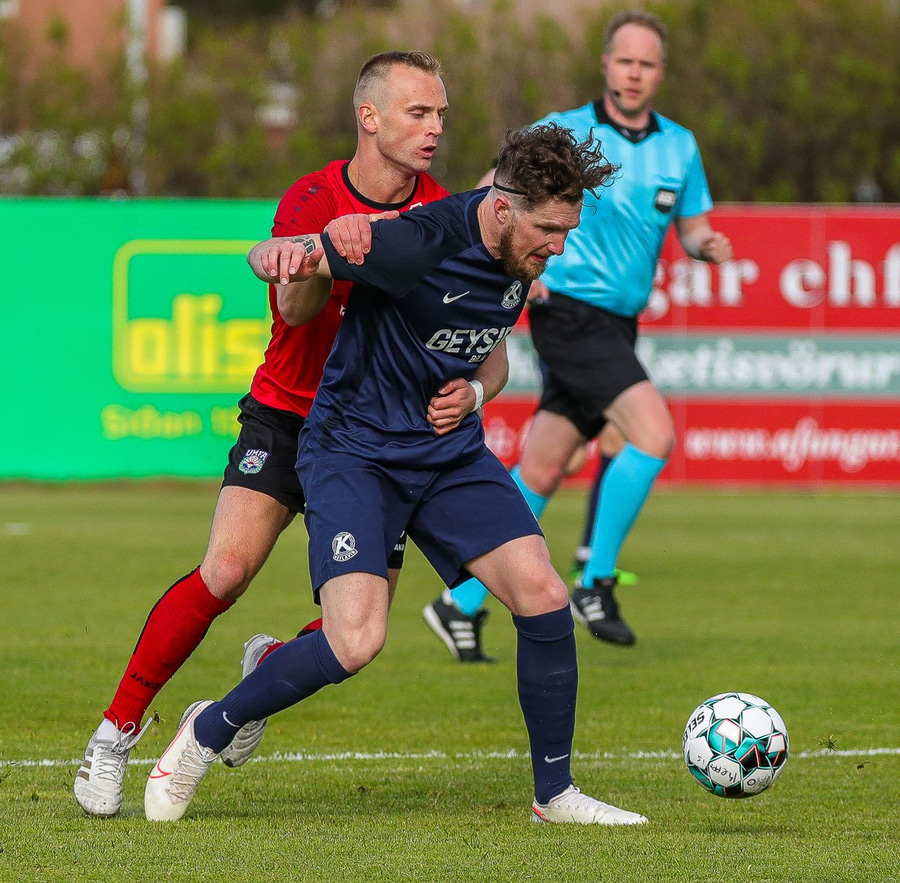 Hafliði fer svo strax í kjölfari á Rúnar Þór sem liggur eftir og heldur um ökklann. Rúnar verið frábær í dag og stendur upp og virðist ætla að harka þetta af sér