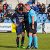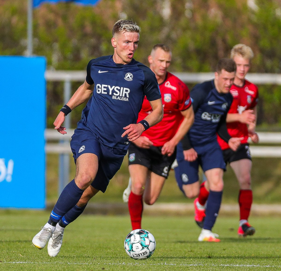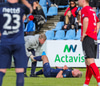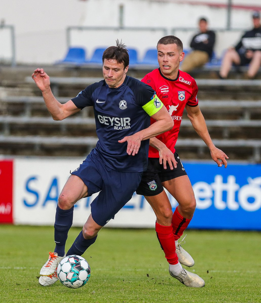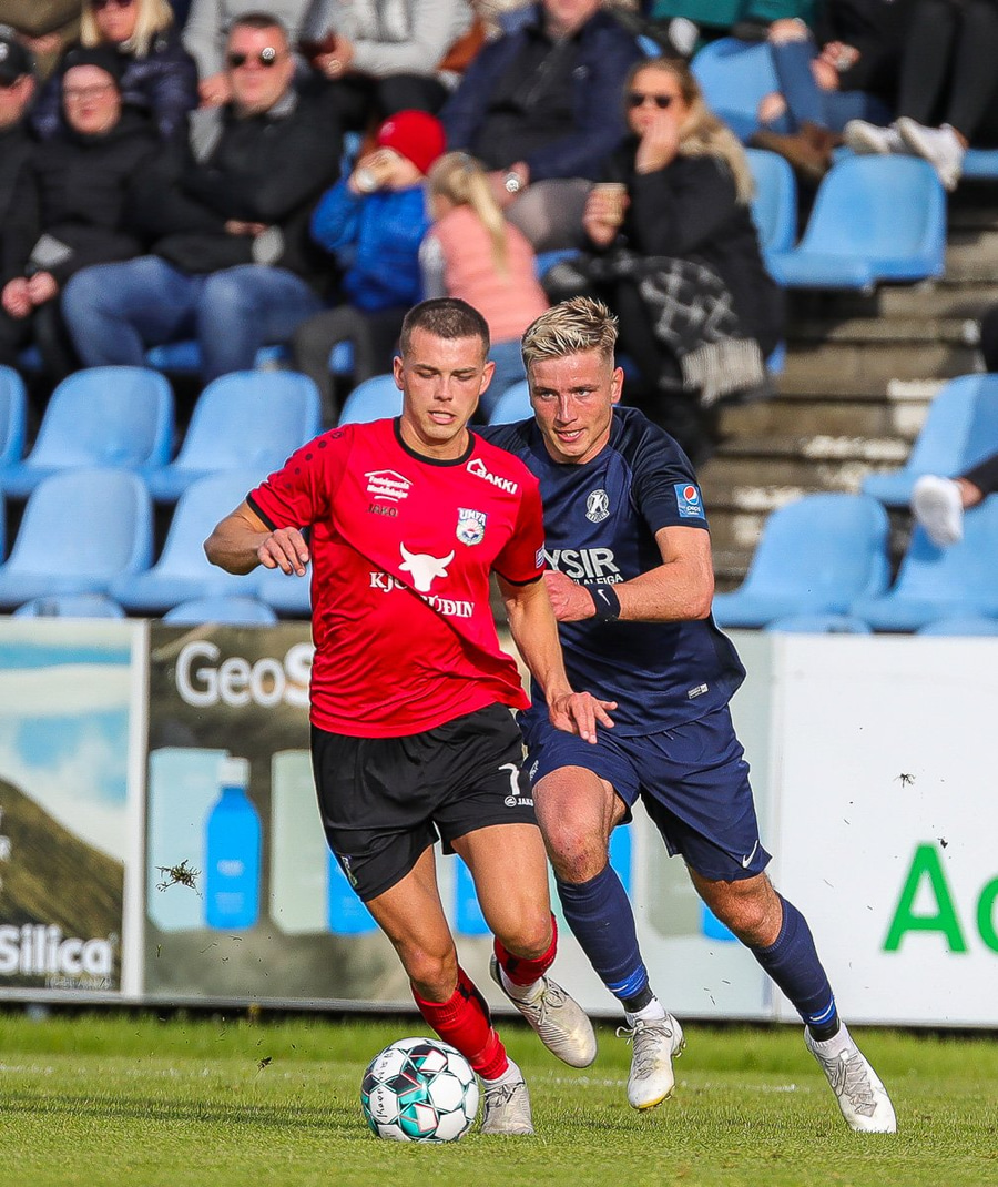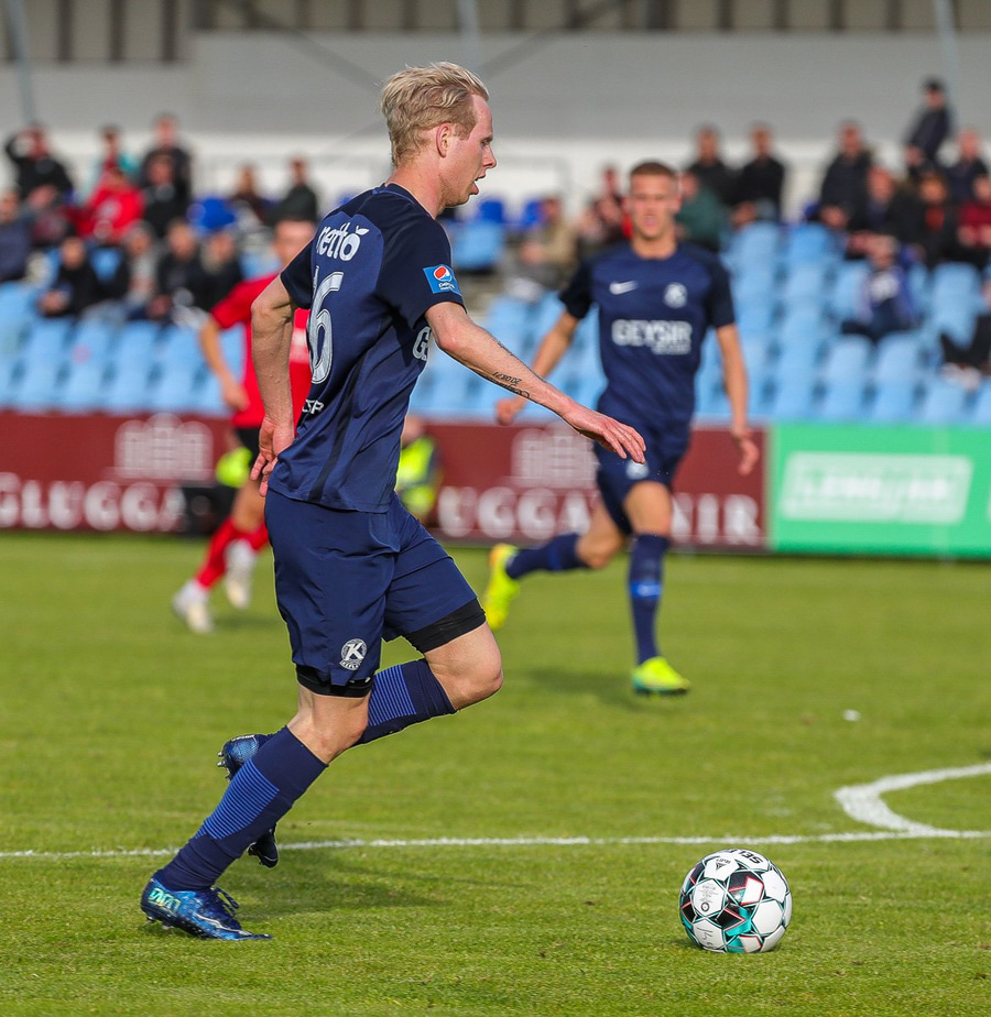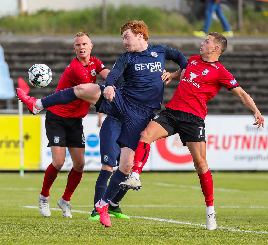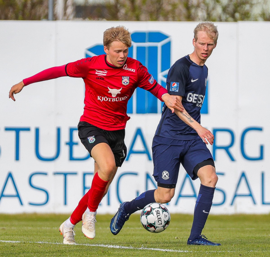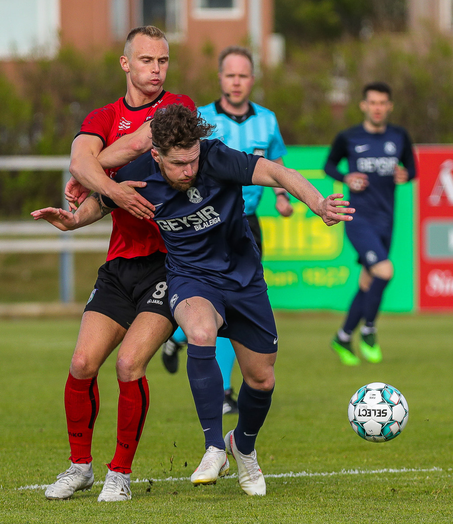 Hafliði fer svo strax í kjölfari á Rúnar Þór sem liggur eftir og heldur um ökklann. Rúnar verið frábær í dag og stendur upp og virðist ætla að harka þetta af sér
