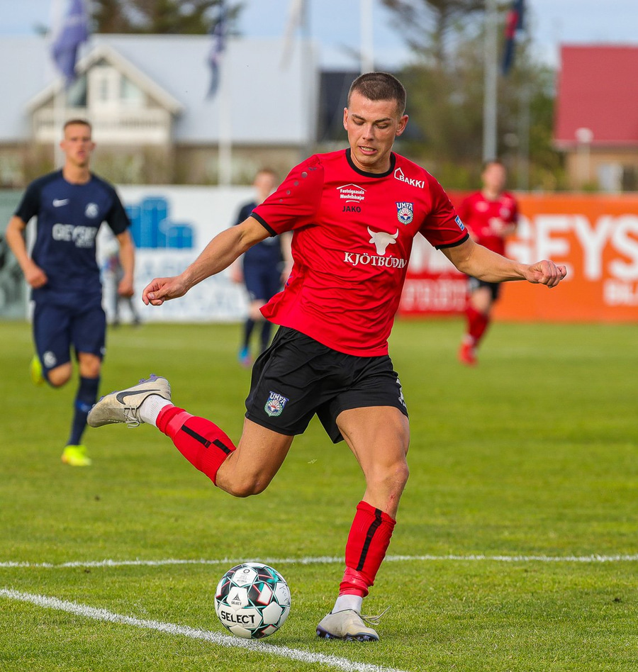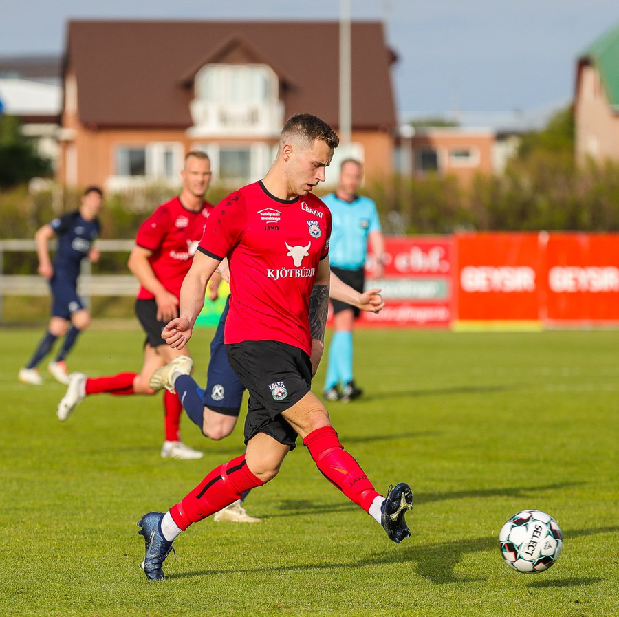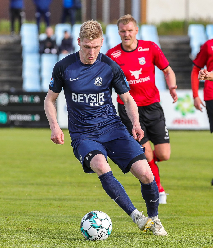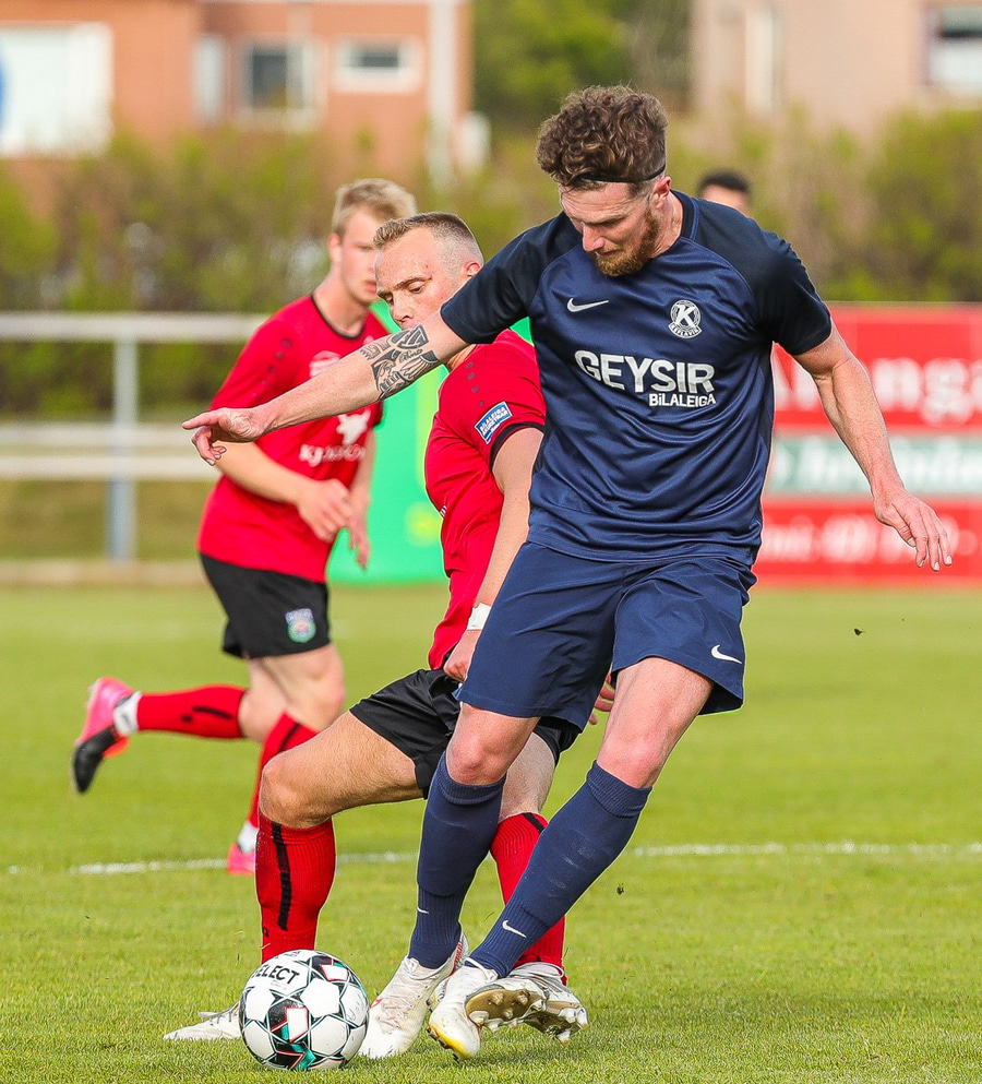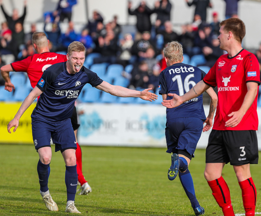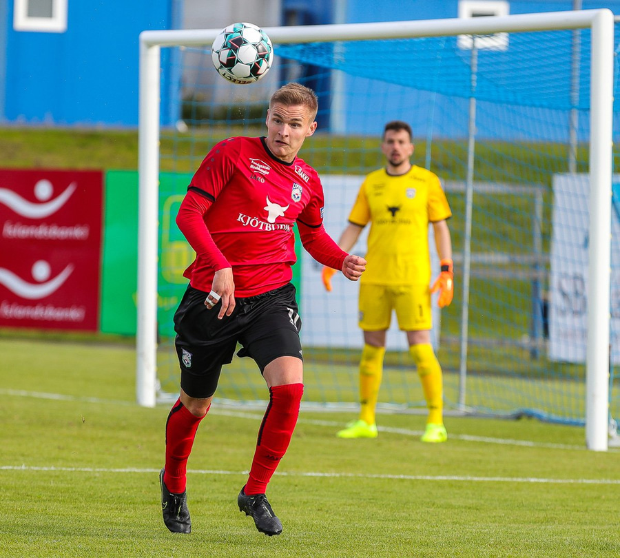 Sindri Þór dansar með boltann í teignum eftir flottan undirbúning Jóhanns Þórs. Missir boltann þó frá sér fyrir fætur Helga sem mokar boltanum yfir línunna af stuttu færi.