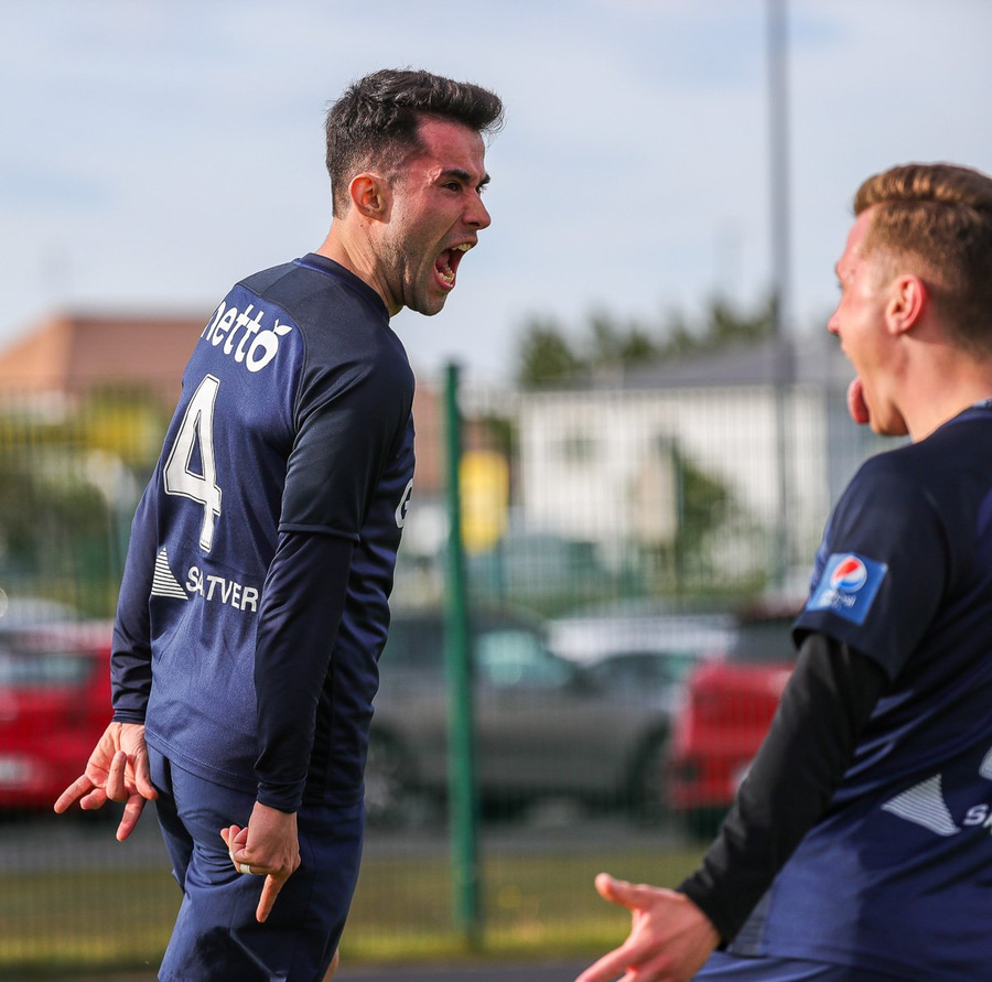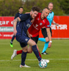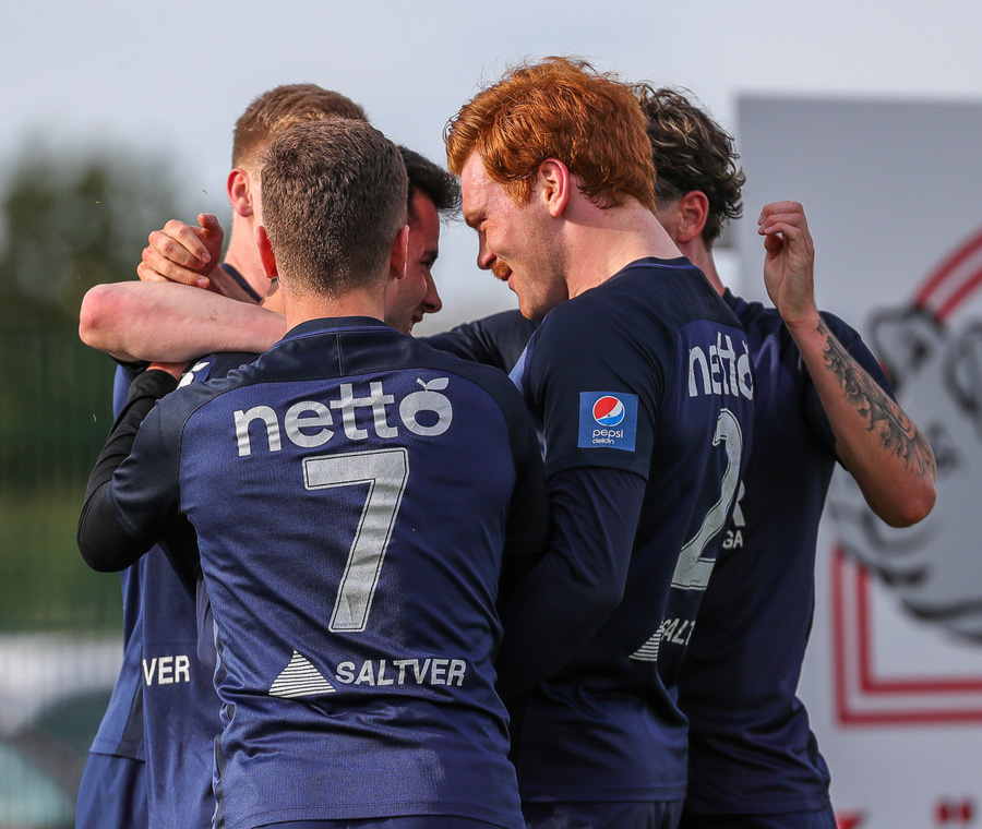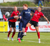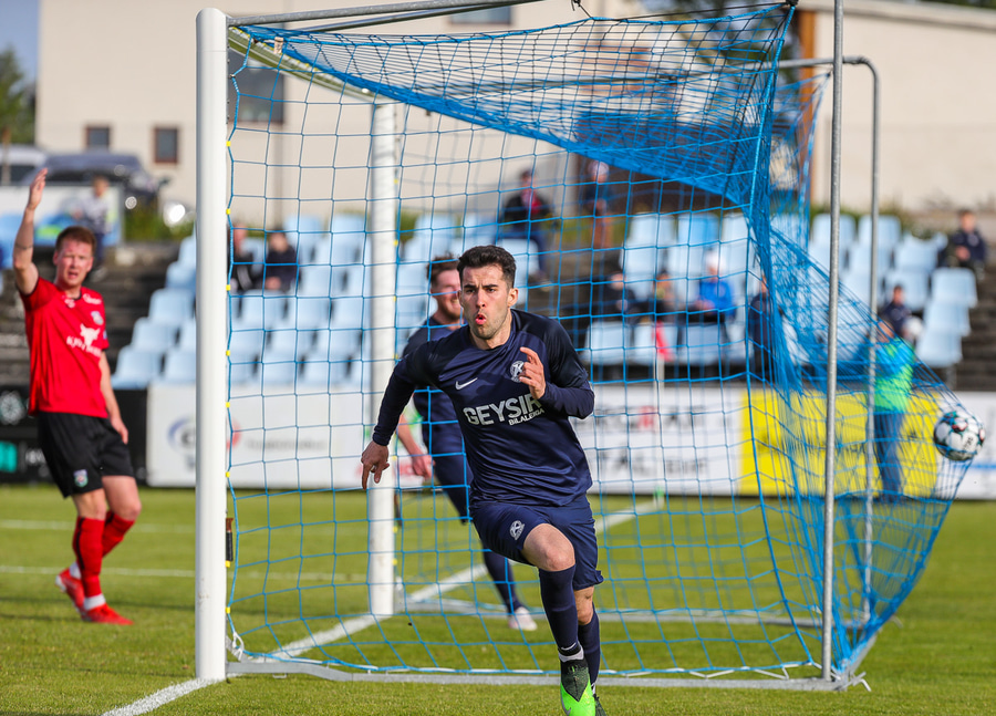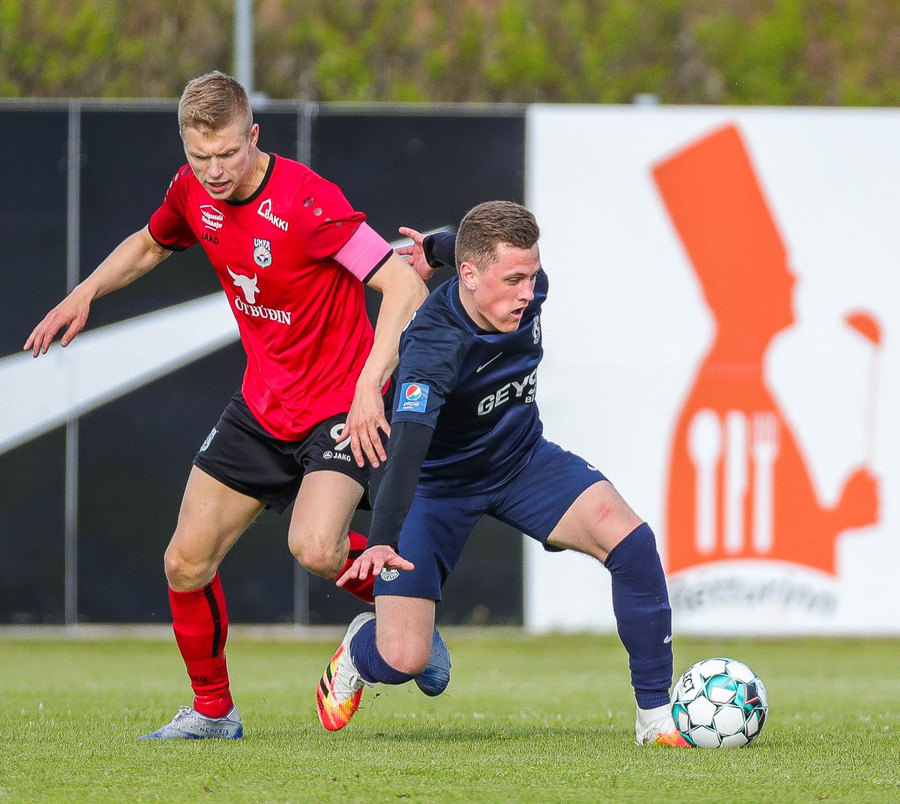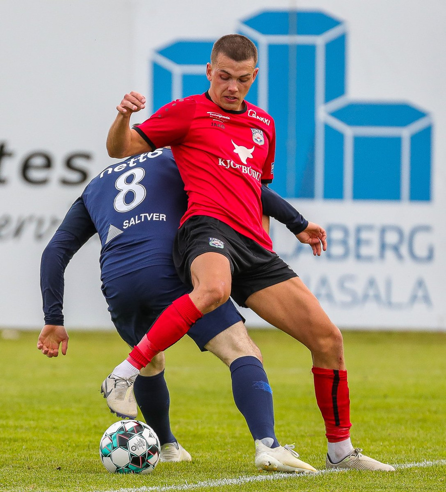 Sindri Þór dansar með boltann í teignum eftir flottan undirbúning Jóhanns Þórs. Missir boltann þó frá sér fyrir fætur Helga sem mokar boltanum yfir línunna af stuttu færi.