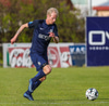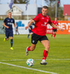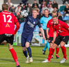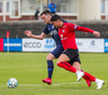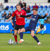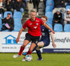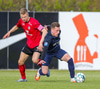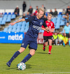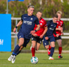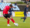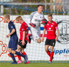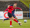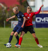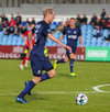 Keflavík aftur. Adam Ægir fer vel með boltann vinstra meginn á vellinum. Leikur inn á völlinn og á skot sem Tena slær frá