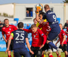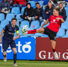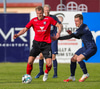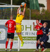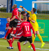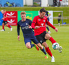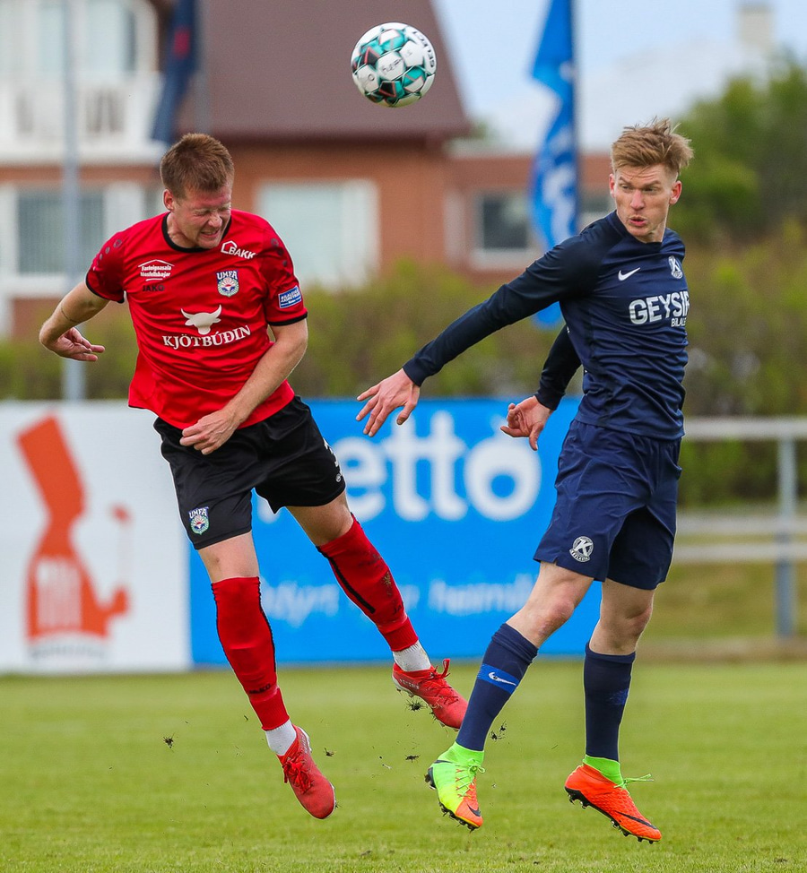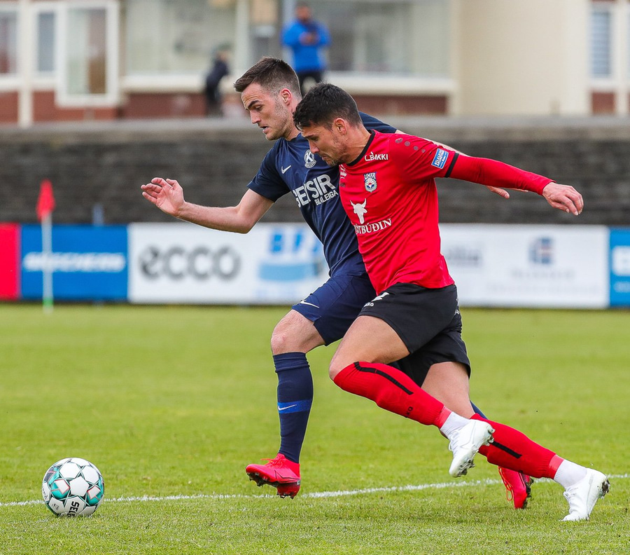 Enn vinna heimamenn boltann hátt á vellinum og er boltinn lagður fyrir Frans í prýðis skotfæri og boltinn himinghátt og talsvert framhjá markinu.