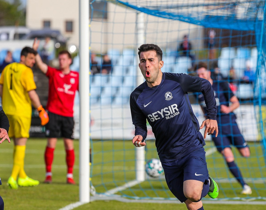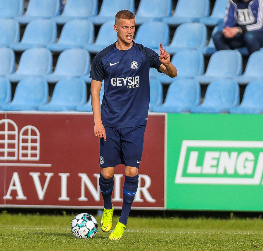Adam Árni þræðir boltann í hlaupaleið Sindra Þórs sem keyrir inn á teiginn aleinn og klárar næsta auðveldlega framhjá Tena í markinu.