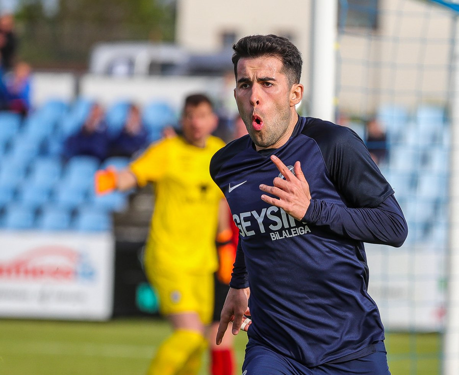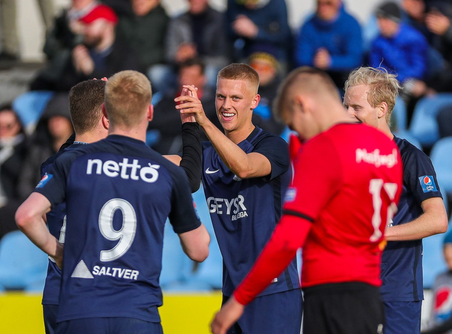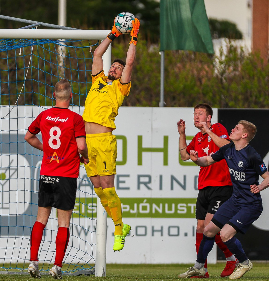 Rúnar Þór með aukaspyrnu inn að marki frá hægri vængnum. Nacho Hera sem skoraði þrennu gegn Birninum fyrir viku siðan heldur áfram þar sem frá var horfið. Rís hæst í teignum og skilar boltanum í netið.