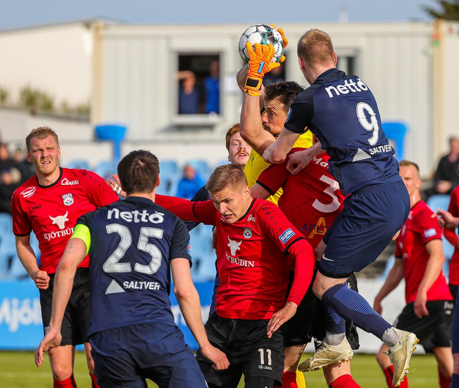 Harður árekstur í teig Aftureldingar Tena fer út í aukaspyrnu og lendir í samstuði við Nacho í leiðinni sem steinliggur. En fær aðhlynningu og heldur leik áfram.