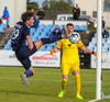 Nacho Heras í dauðafæri á markteig eftir að Keflvíkingar unnu boltann hátt á vellinum en skóflar boltanum yfir af stuttu færi.