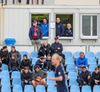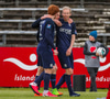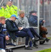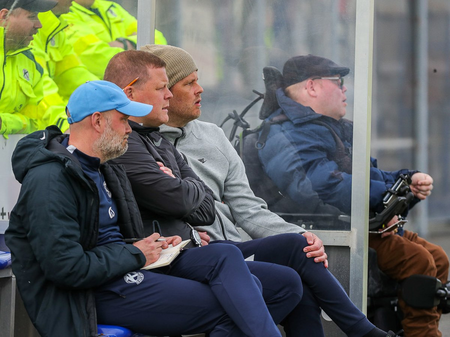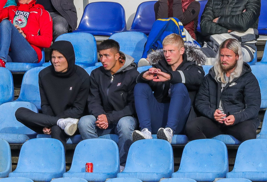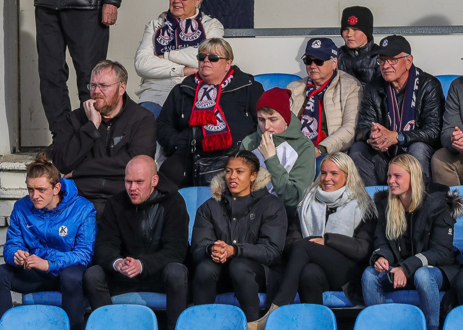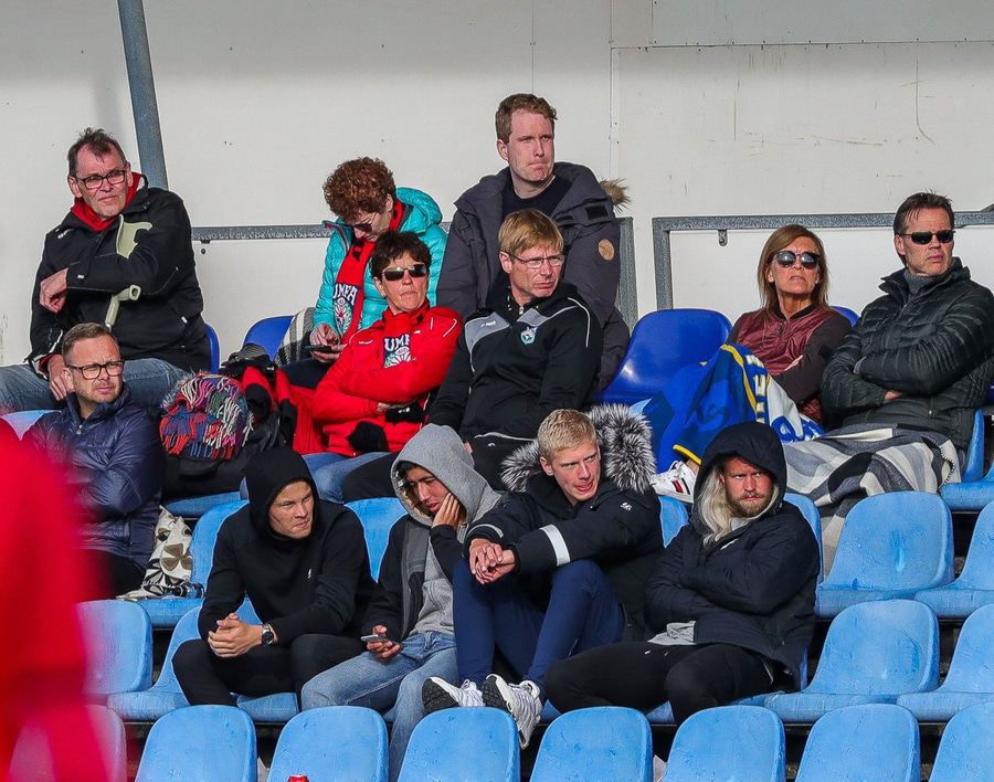 Góðmennt í stúkunni. Arnar Þór Viðarsson þjálfari u21 landsliðs karla er mættur. Nóg af ungum mönnum að spila fyrir hann að fylgjasst með.