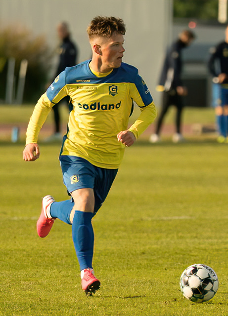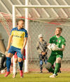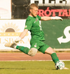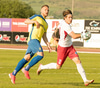 Oddur Ingi í góðu færi! Guðmundur Magnússon stingur boltanum inn á hann og hann er einn gegn Aroni Birki. En Aron sér við honum og ver boltann vel í horn!