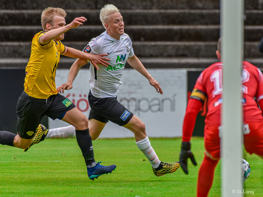 Stuttu seinna vinnur Björn Daníel boltann af Óttari Bjarna og rennir boltanum rétt framhjá!