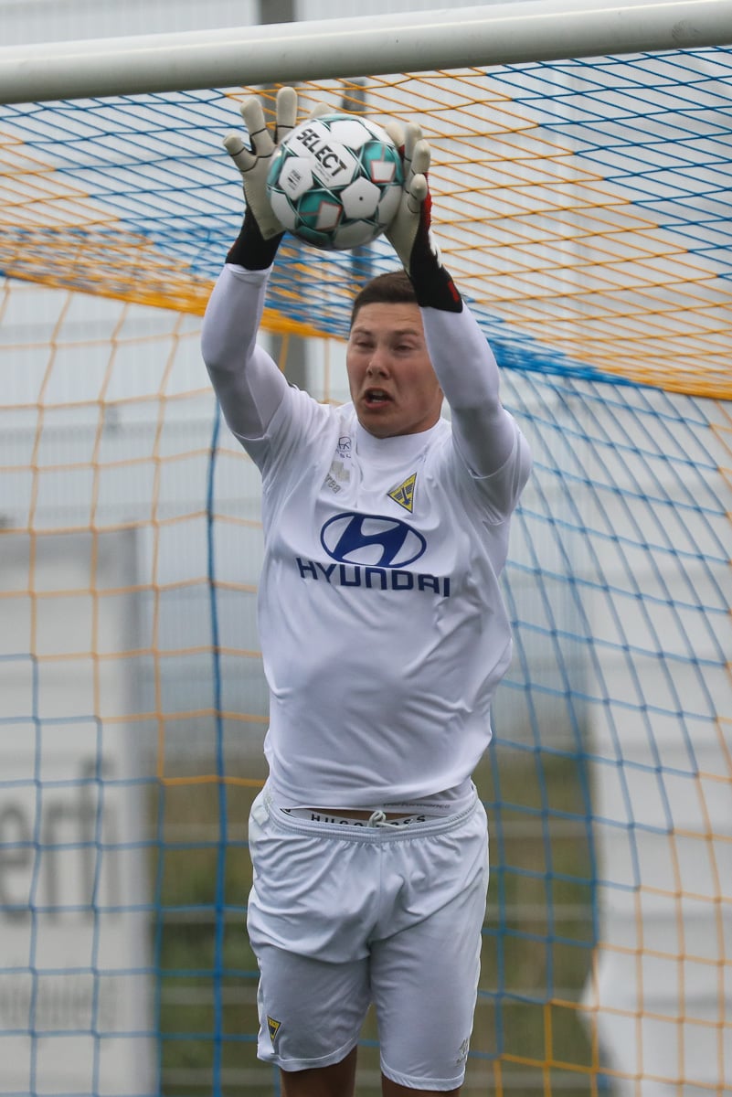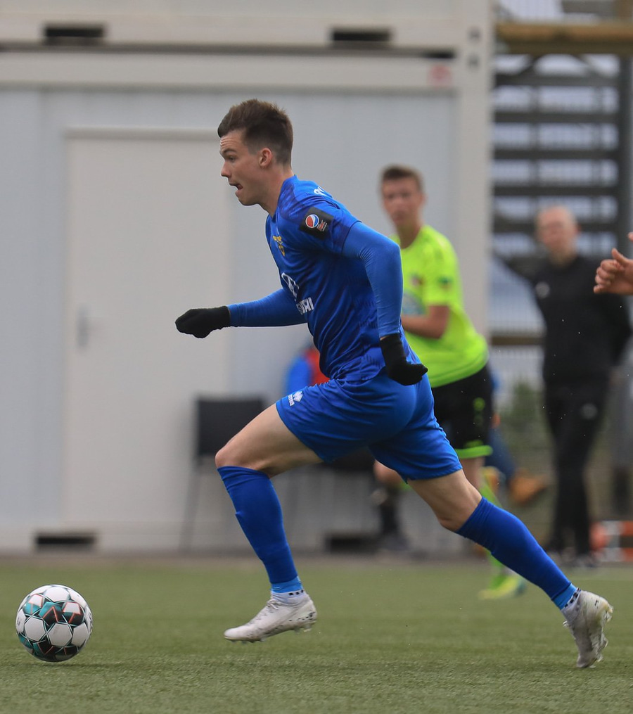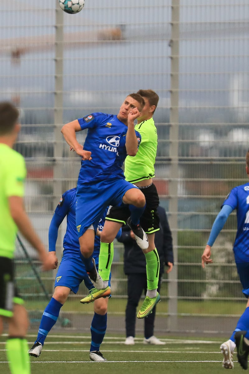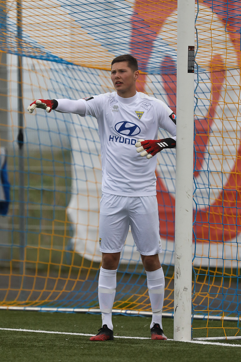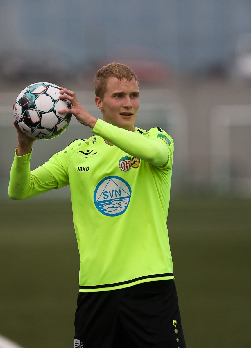 Kristófer Orri og Ástbjörn eru með hælsendingar og stæla úti hægra megin, boltinn út á Axel sem potar Pétur í gegn en Aleksandar vakandi í markinu og er fljótur út, Pétur reynir að pota boltanum framhjá Aleksandar sem handsamar boltann.