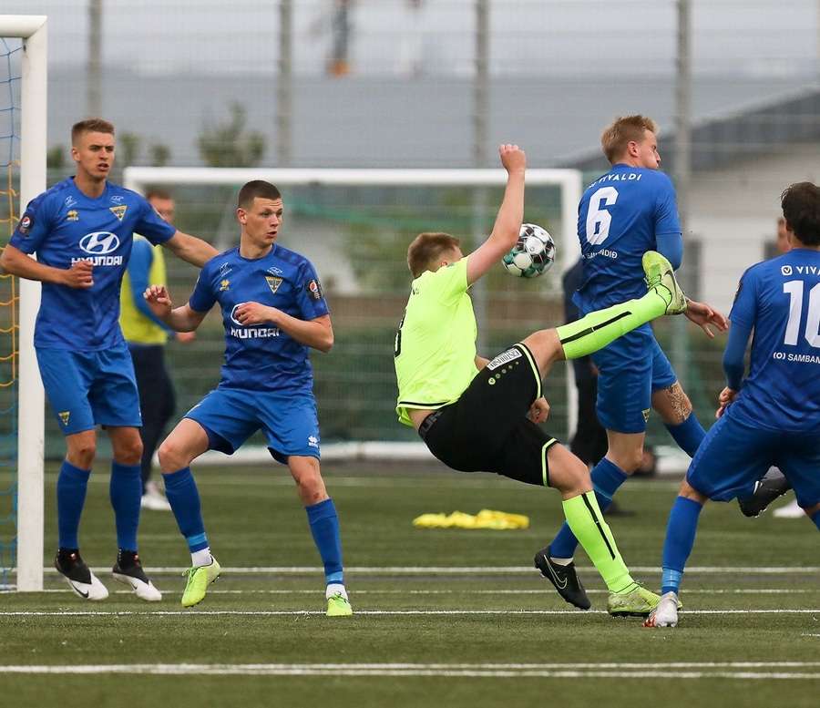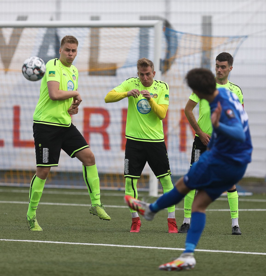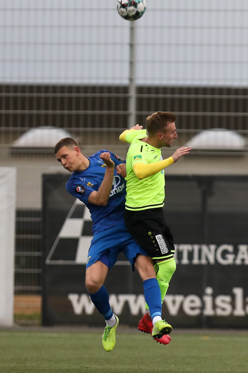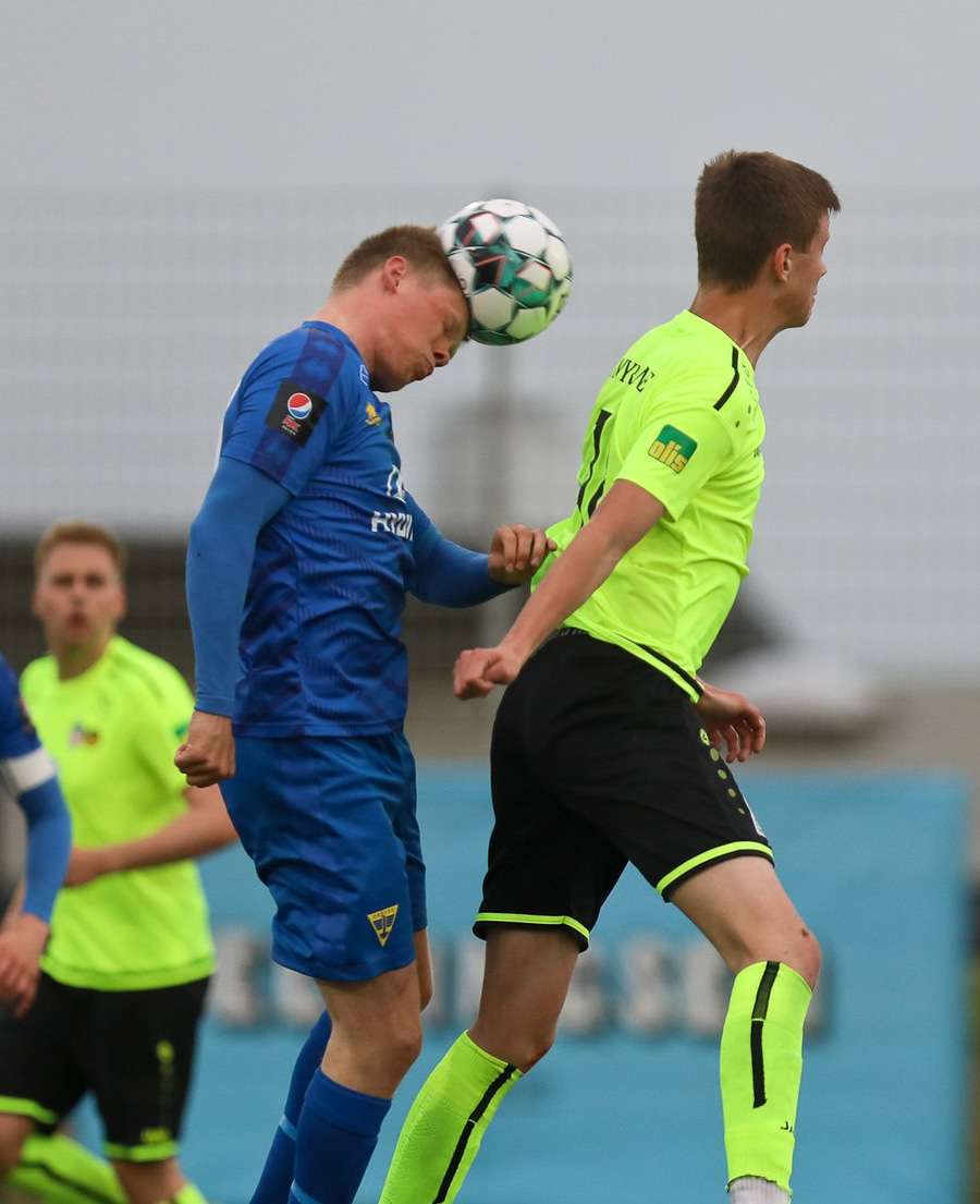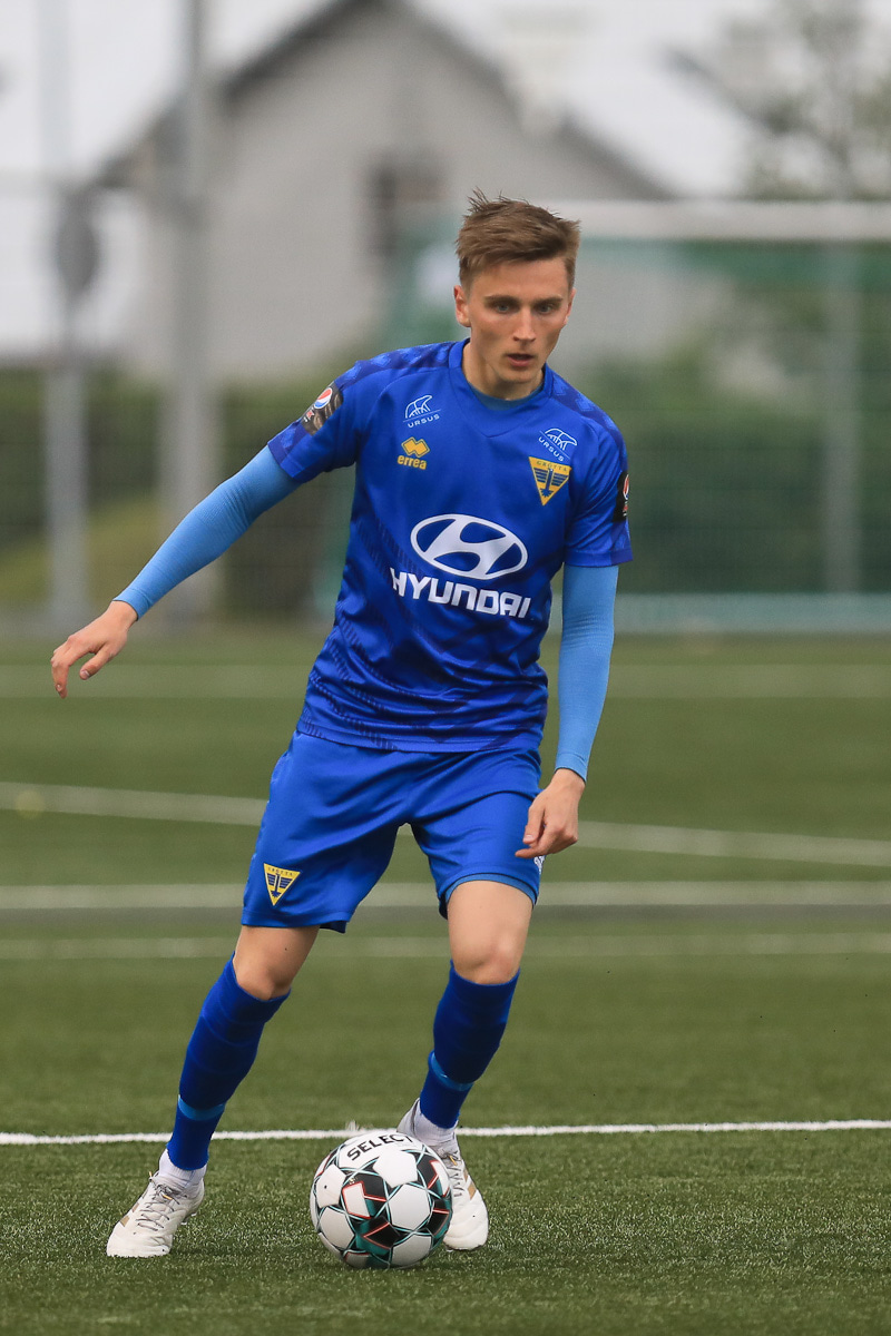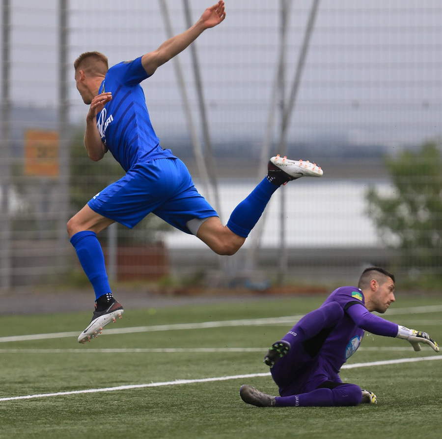 Kristófer Orri og Ástbjörn eru með hælsendingar og stæla úti hægra megin, boltinn út á Axel sem potar Pétur í gegn en Aleksandar vakandi í markinu og er fljótur út, Pétur reynir að pota boltanum framhjá Aleksandar sem handsamar boltann.