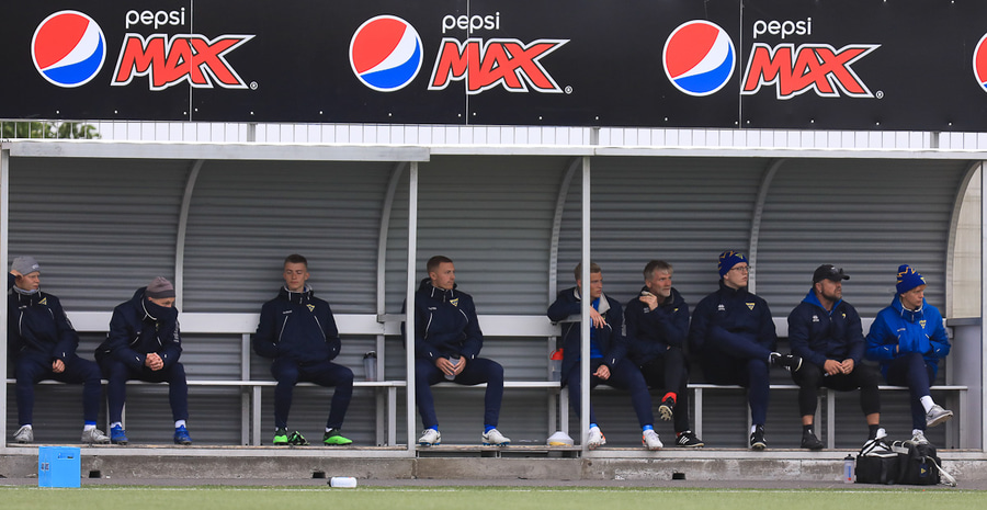 Ástbjörn tekur hratt innkast inn á Kristófer eftir vel vakandi boltasækjara, Kristófer potar boltanum út á Óskar Jóns sem er í góðu skotfæri en smellir boltanum yfir.