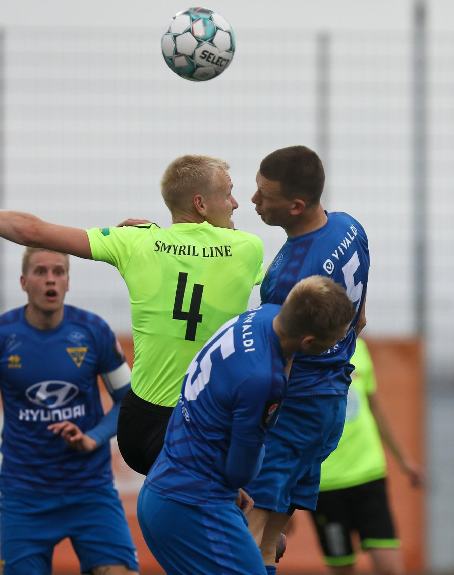 Kalli fer í átt að teignum frá vinstri vængnum, fer á hægri fótinn og smellir honum á markið en Aleksandar ver.