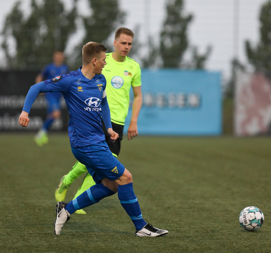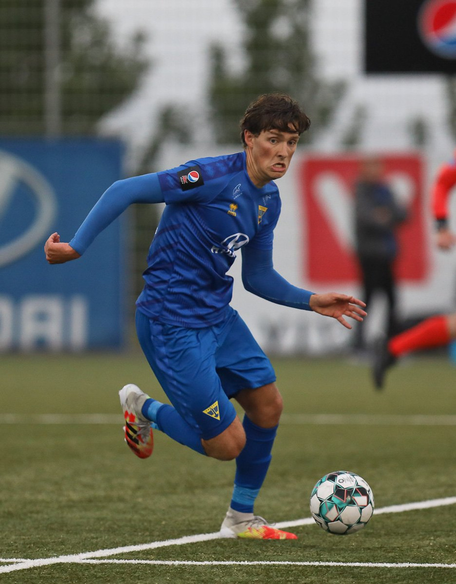 Óliver Dagur með gullsendingu upp hægri kantinn á Ástbjörn sem leggur boltann út á Kristófer sem er aleinn fyrir framan markið en setur boltann yfir!