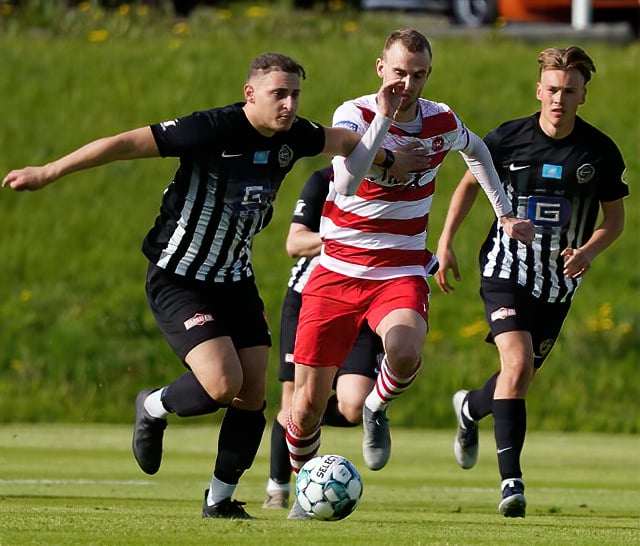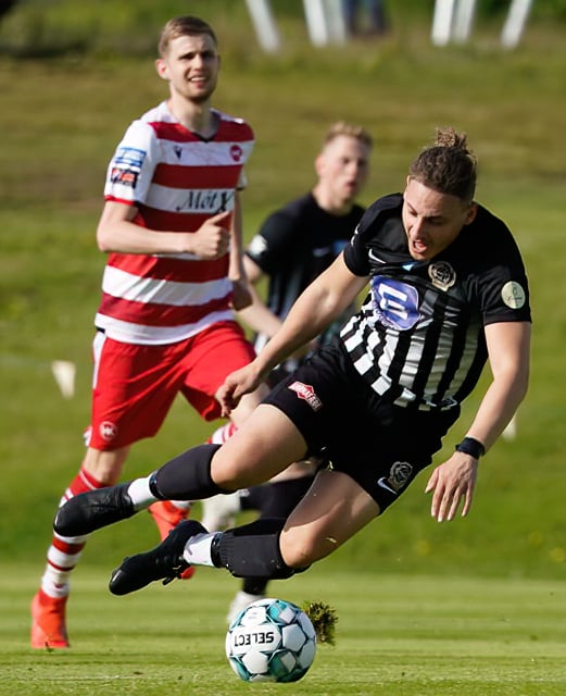 Hjörvar Sigurgeirsson fer illa með Ásgeir Börk og á öflugan sprett. Magni vildi fá auki í kjölfarið en ekkert dæmt.