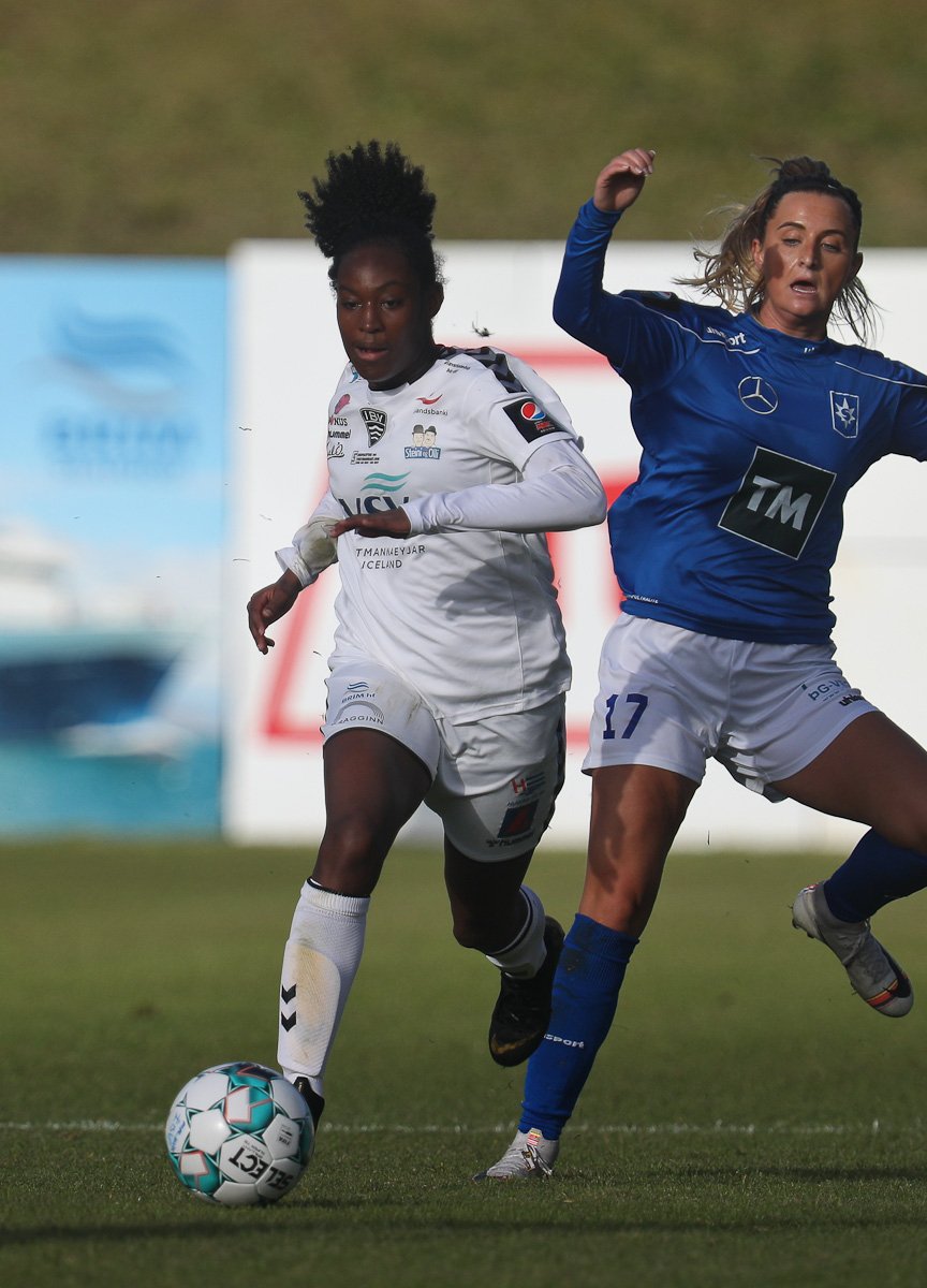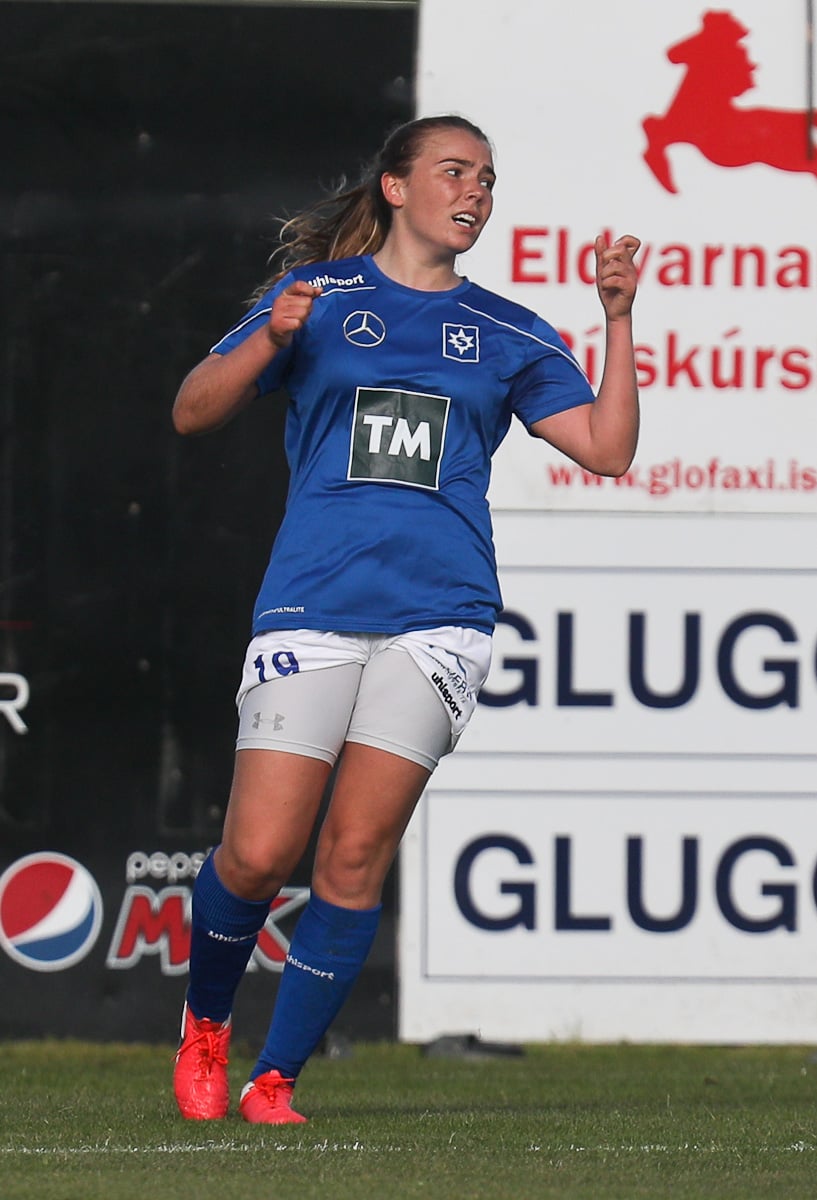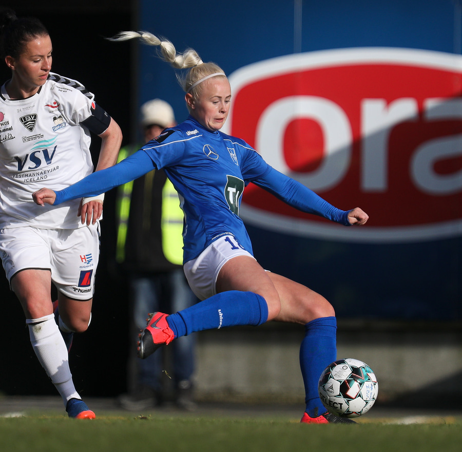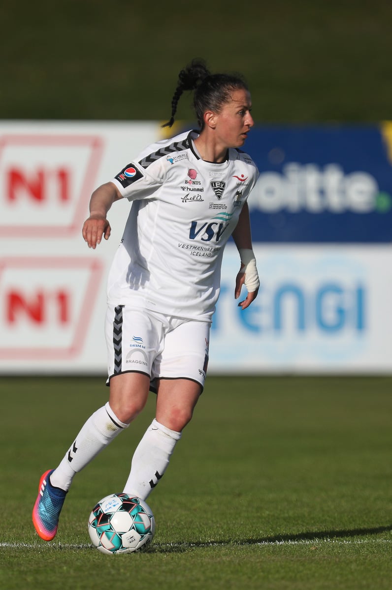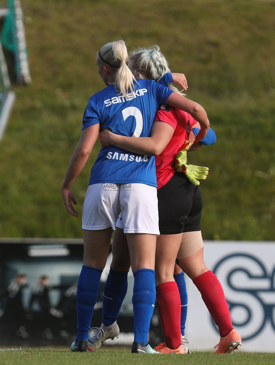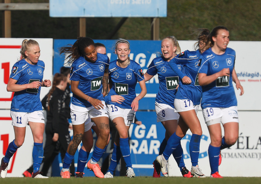 ÍBV fær aukaspyrnu rétt fyrir utan teig. Danielle og Fatma reyna eitthvað af æfingasvæðinu en það gekk ekki.
