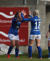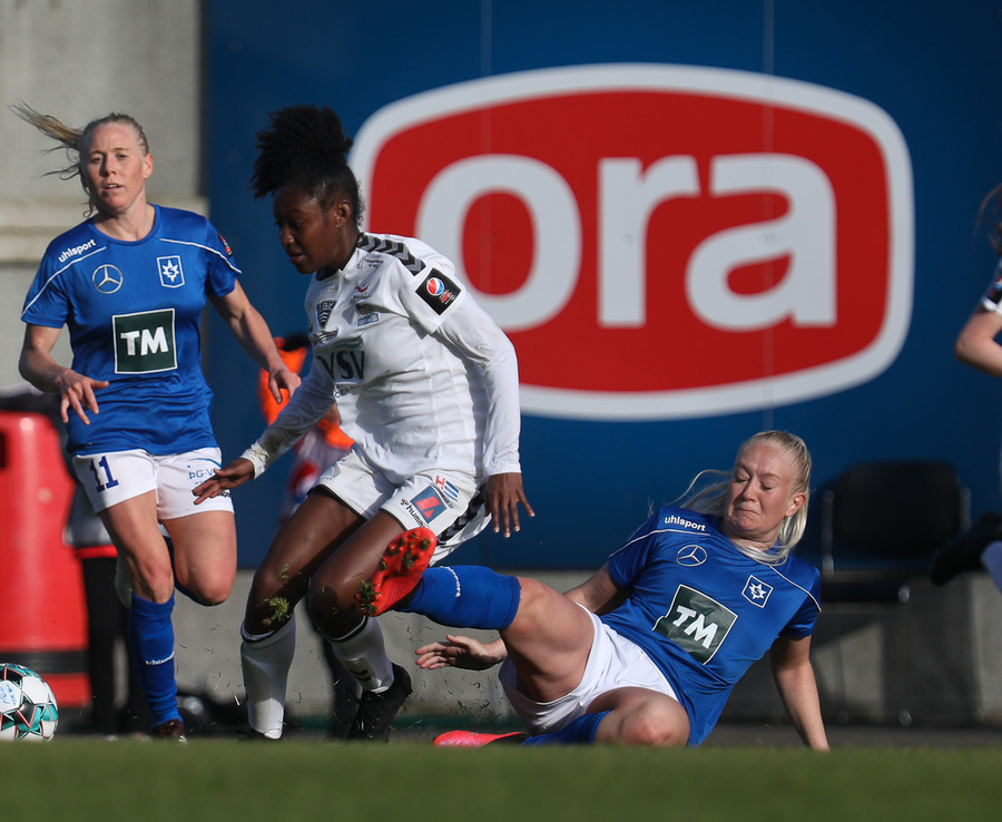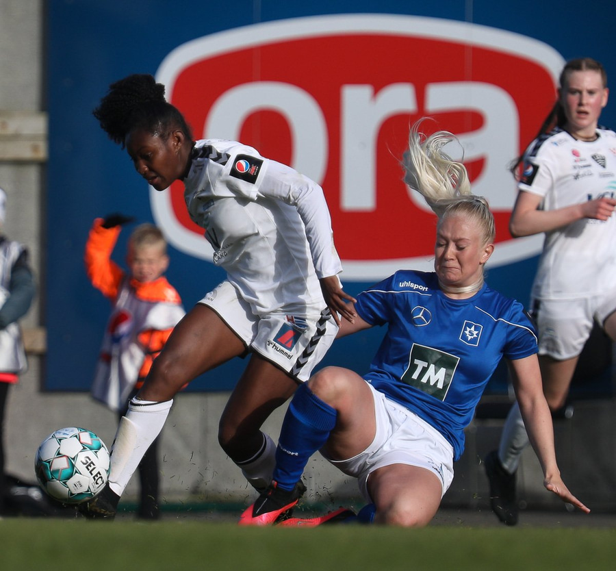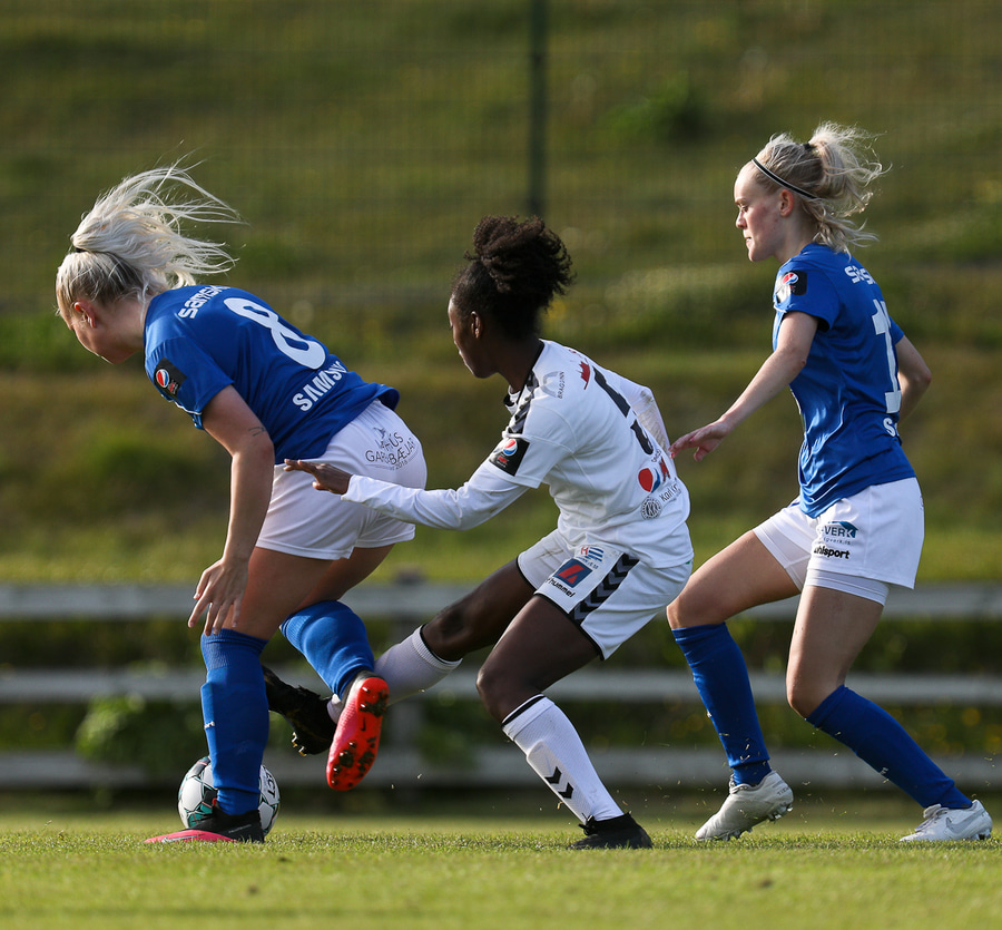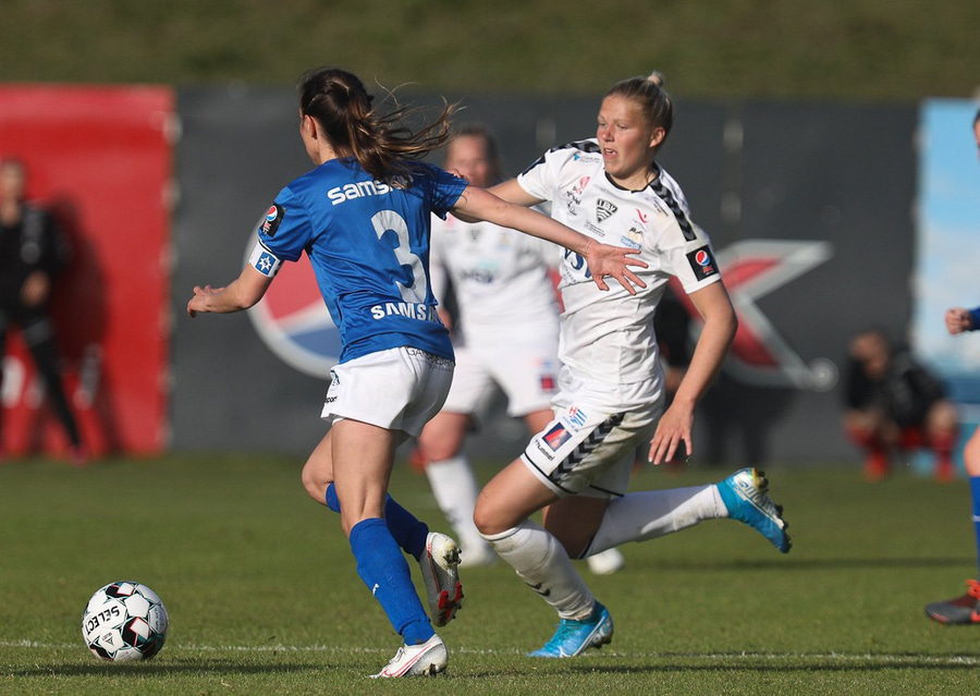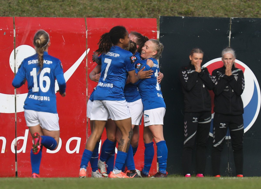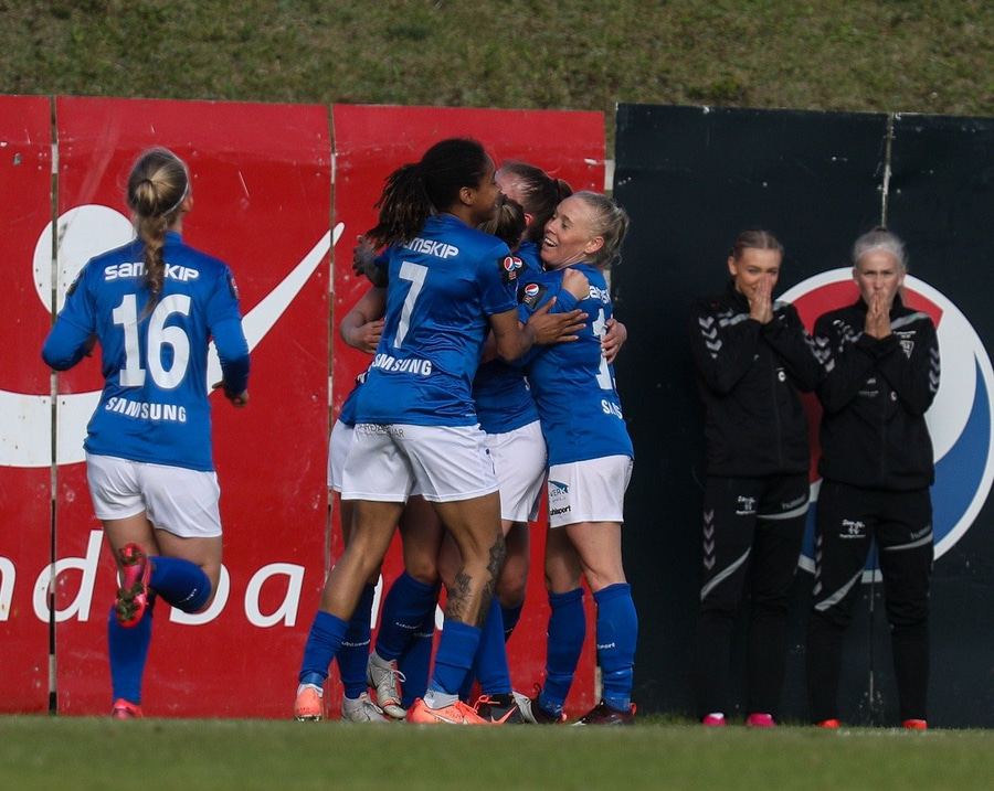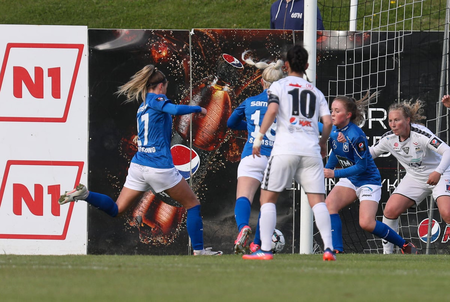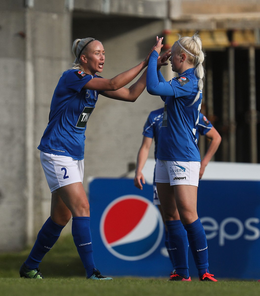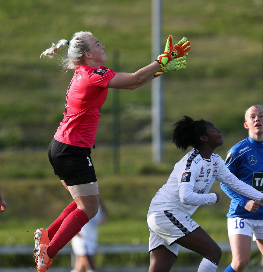 ÍBV fær aukaspyrnu rétt fyrir utan teig. Danielle og Fatma reyna eitthvað af æfingasvæðinu en það gekk ekki.