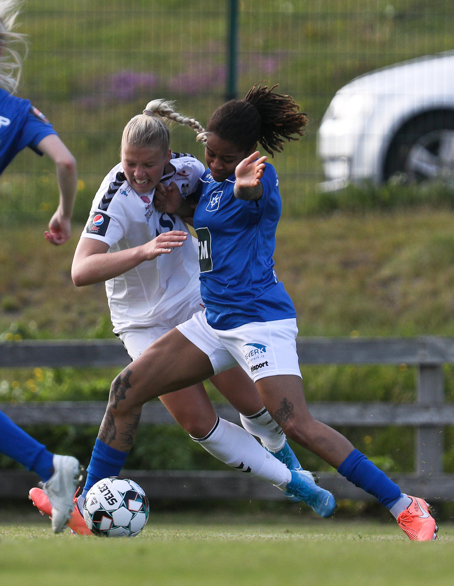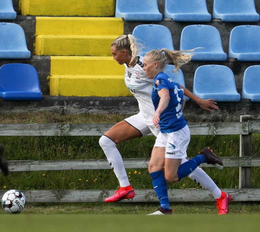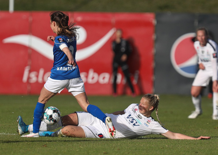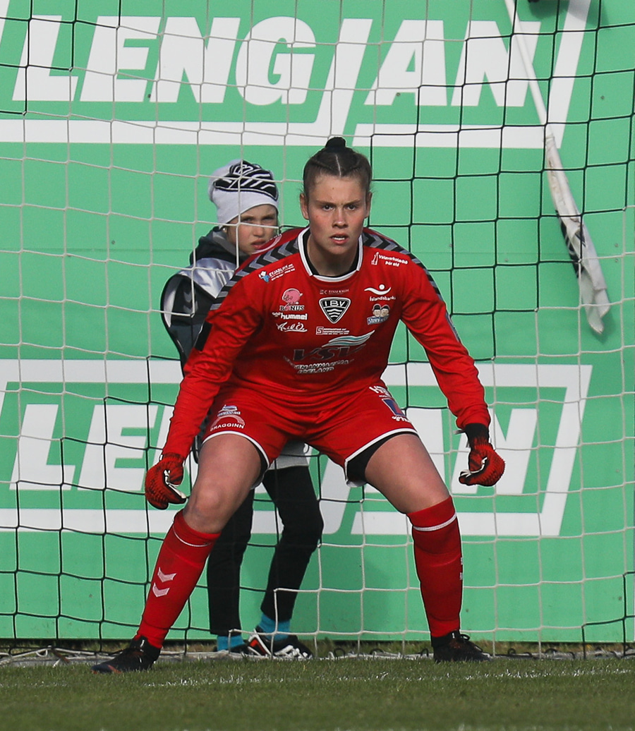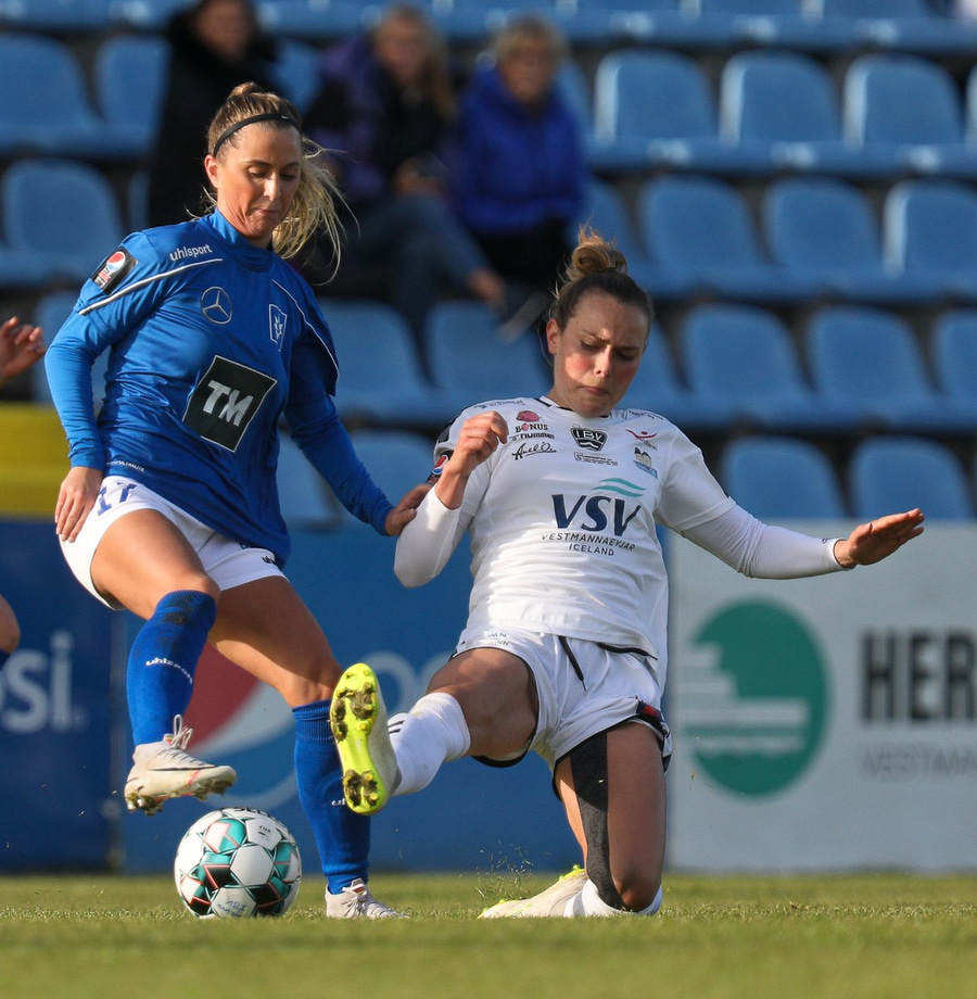 ÍBV með góða sókn og Danielle er dæmd rangstæð og lendir í samstuði við Birtu í markinu.