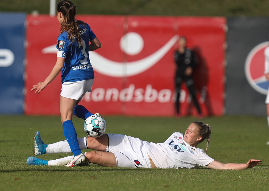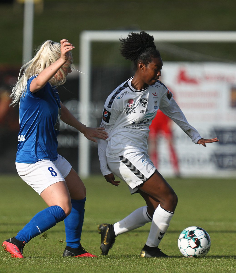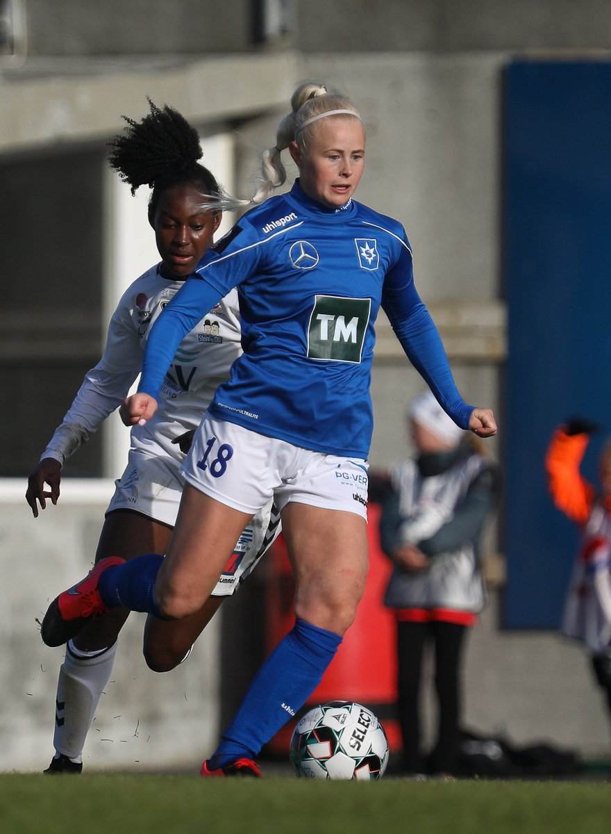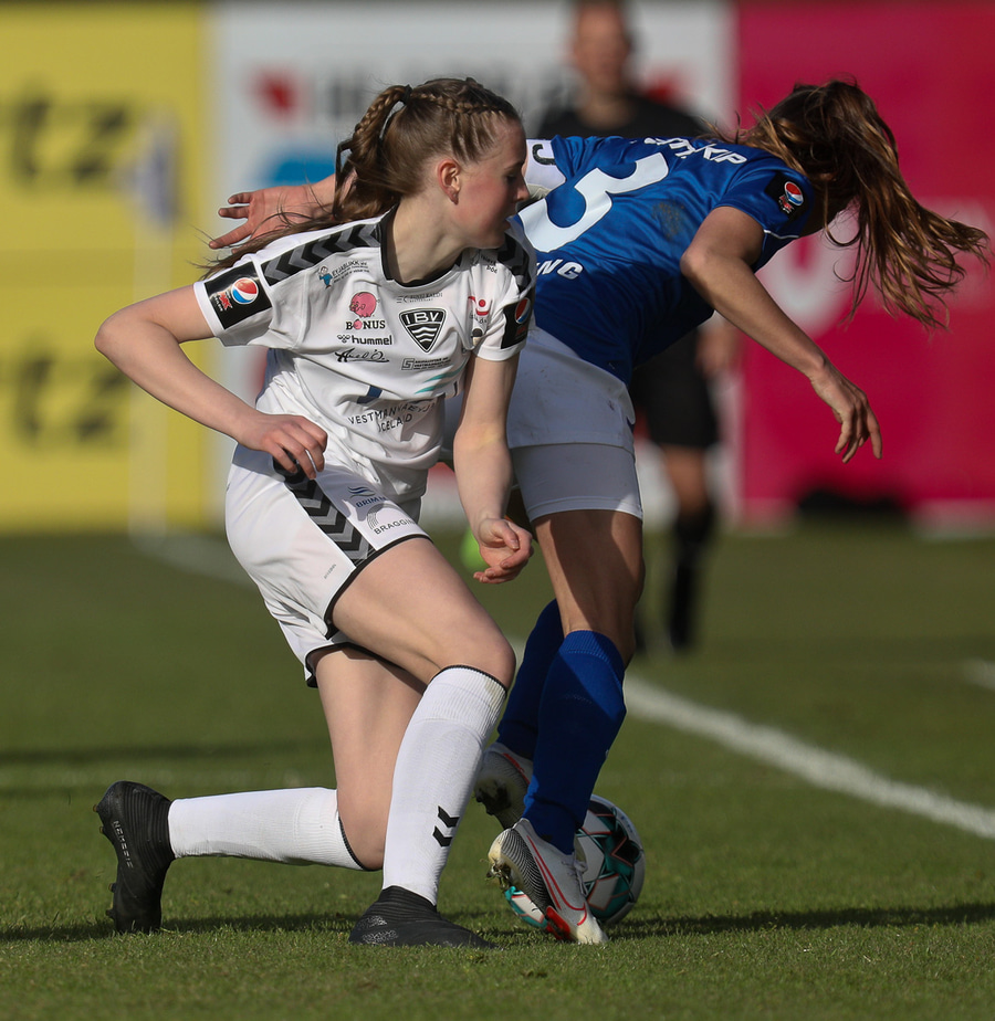 ÍBV með góða sókn og Danielle er dæmd rangstæð og lendir í samstuði við Birtu í markinu.