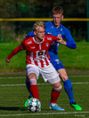 Daníel Hafsteins í færi eftir hik hjá Svein Óla en Sveinn ver í horn sem ekkert verður úr.