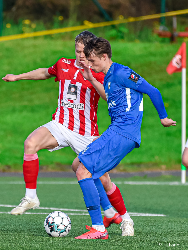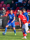 Aron Þórður tapar boltanum og togar Baldur niður til að stöðva skyndisókn. Uppsker tiltal frá Einar