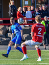 Fær boltann í fætur um 25 metra frá marki rekur hann aðeins áfram í átt að teignum og smyr hann í samskeytin. Daði hreyfði sig ekki á línunni. Hér er allt jafnt!