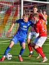 Morten skorar með skalla frá markteig eftir fyrirgjöf frá hægri. Einfaldlega miklu sterkari en varnarmenn Þróttar og skilar boltanum í netið.