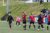 Víkingur Ó. fá horn eftir langa stungu James Dale til vinstri, sem Gonzalo Zamorano Leon tekur vel á móti og sendingin fyrir fer af varnarmanni