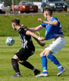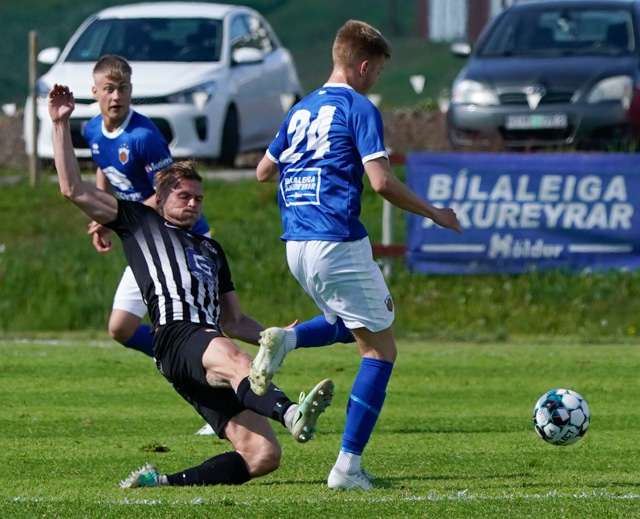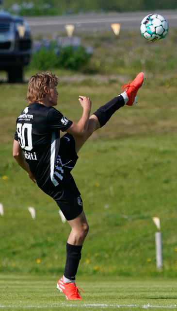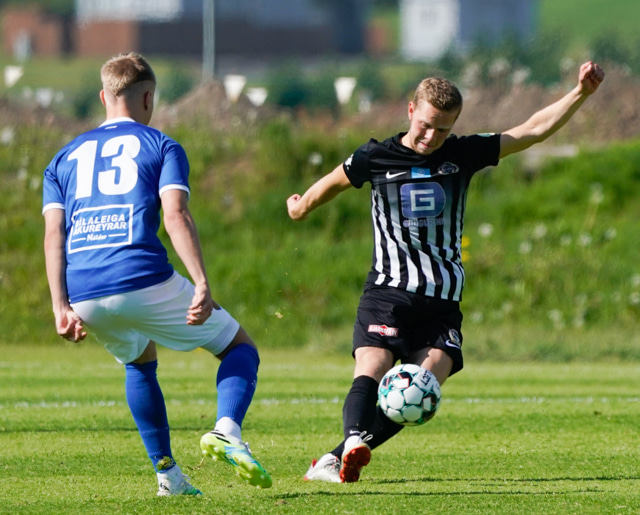2-1! Þetta er ekki lengi að gerast á Grenivíkurvelli. Baldvin missir boltann klaufalega sem Fred þakkar fyrir. Fred leggur svo boltann inn á Aron sem á laflaust skot en það fer framhjá Steinþór í markinu.