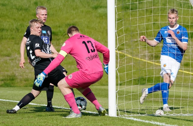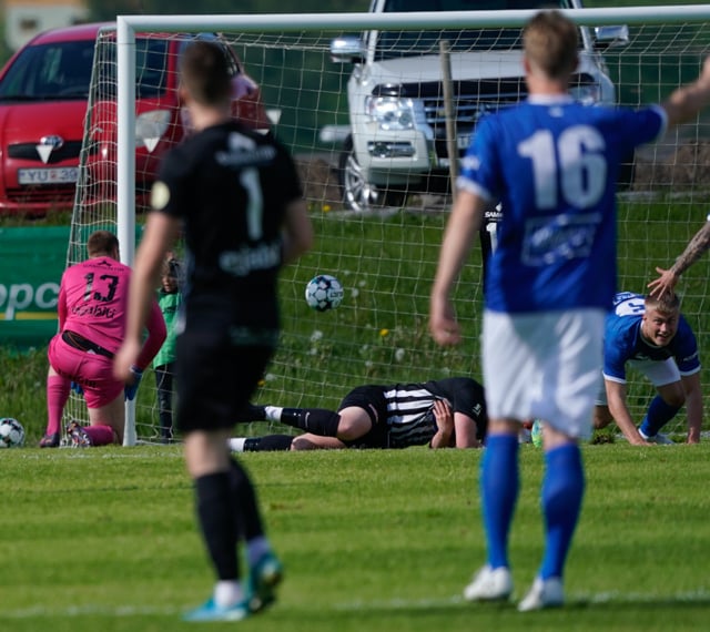 GEGGJUÐ varsla hjá Steinþóri! Alexander á skot af stuttu færi inn í teig en Steinþór nær að blaka í boltann.