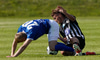 Alltof seinn í tæklingu á Alexander sem lá óvígur eftir. Eftir aðhlynningu getur hann þó haldið leik áfram.