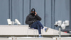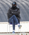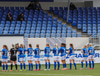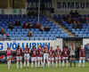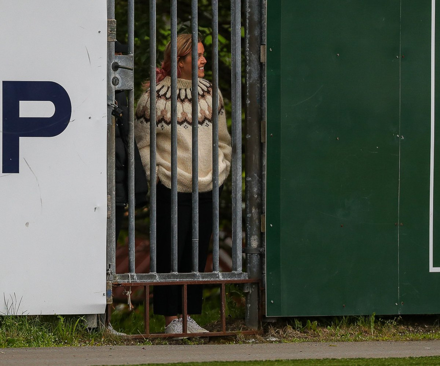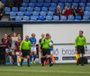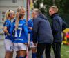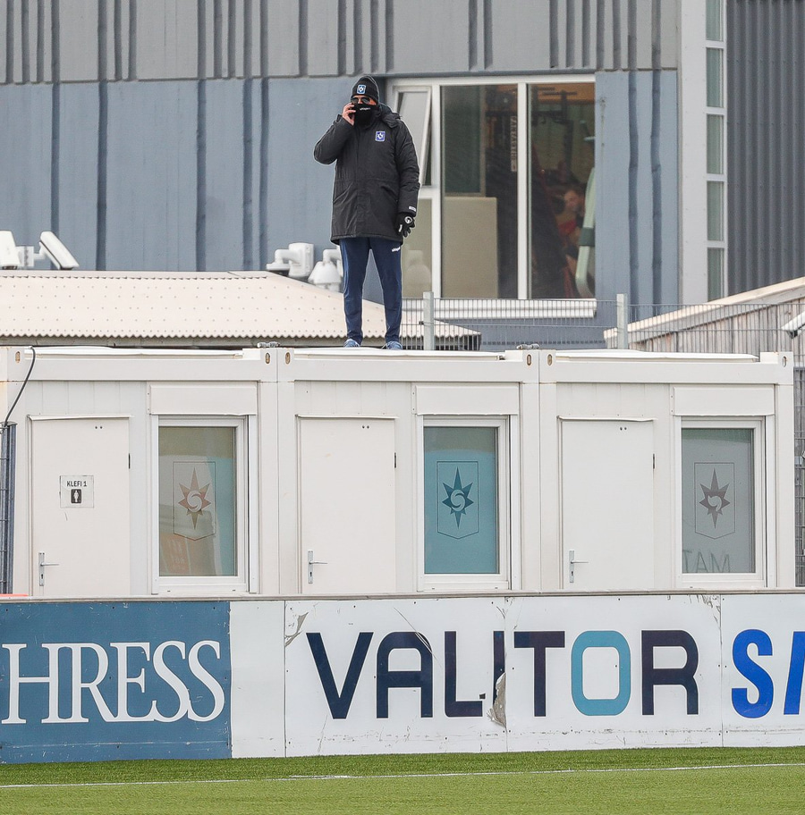 Samstöðufundur hjá heimakonum hér á vellinum áður en seinni hálfleikur er flautaður á. Þær mættu um tveimur mínútum fyrr og tóku smá fund á vellinum. Ætli við fáum leik í seinni?