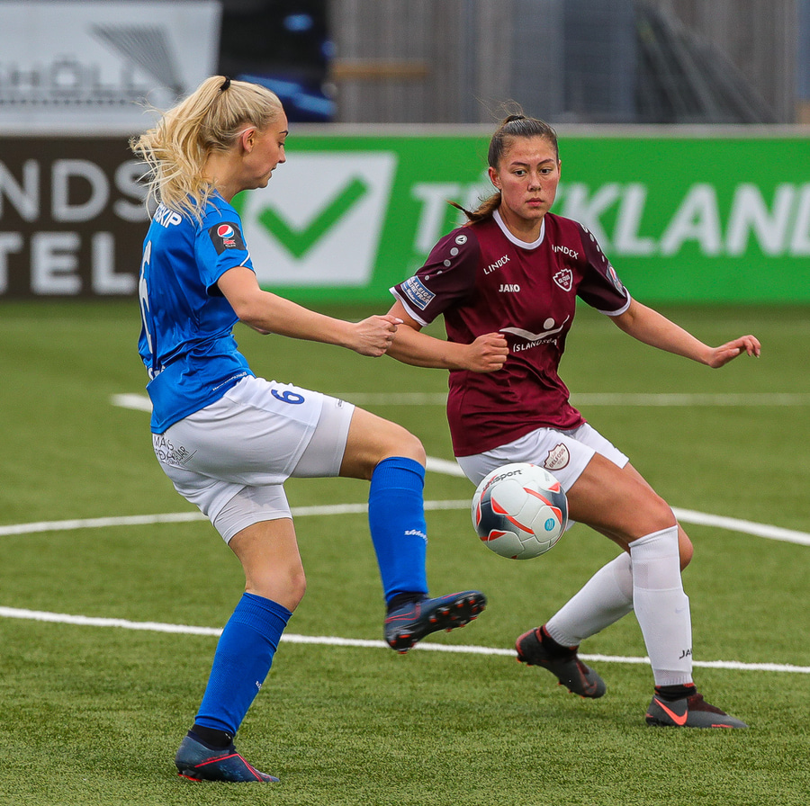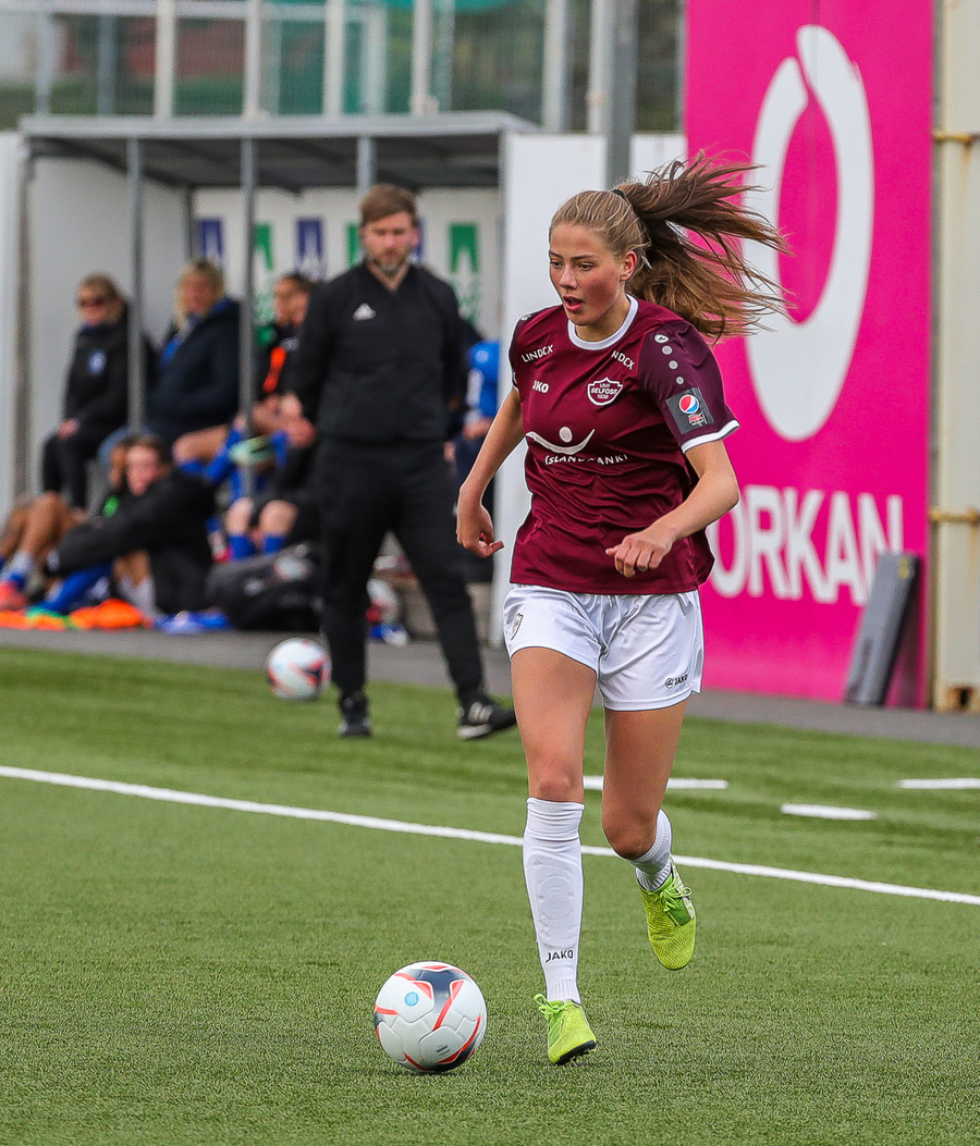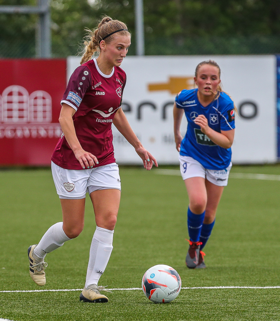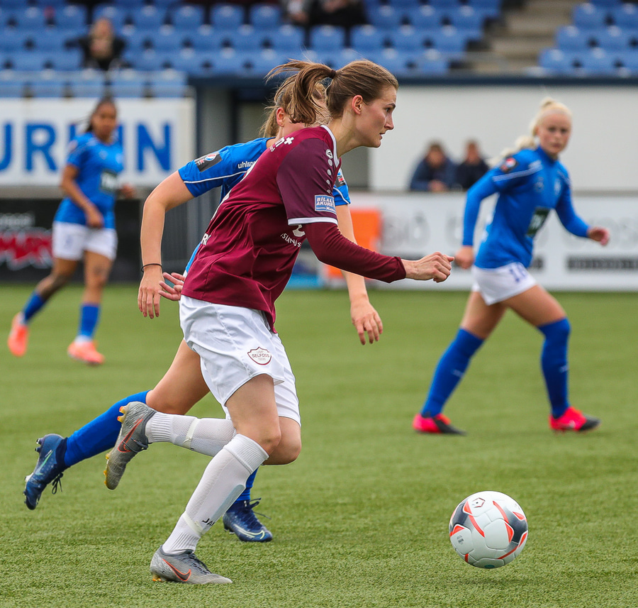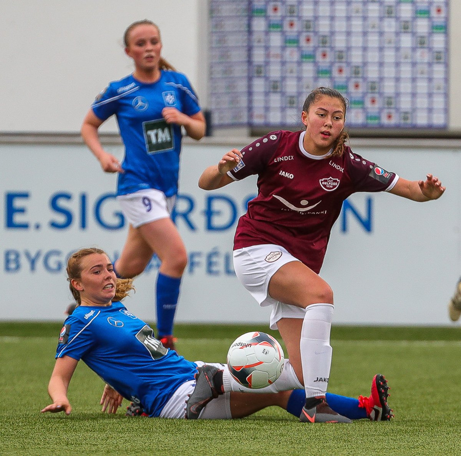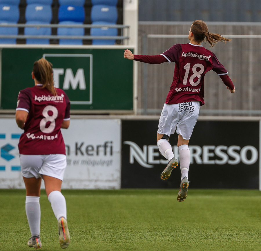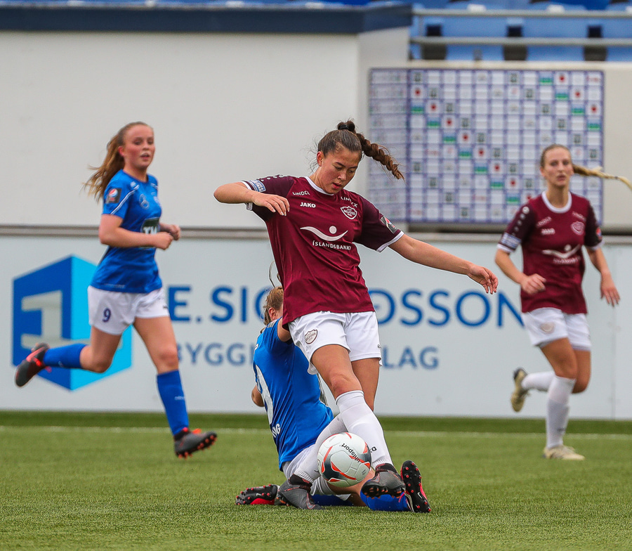 Jasmín tapar boltanum illa og Tiffany vinnur hann, sendir inn fyrir á Magdalenu sem klárar frábærlega fram hjá Birtu í markinu. Annað mark hennar í dag