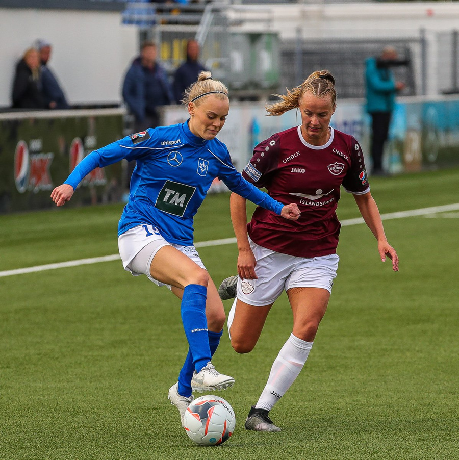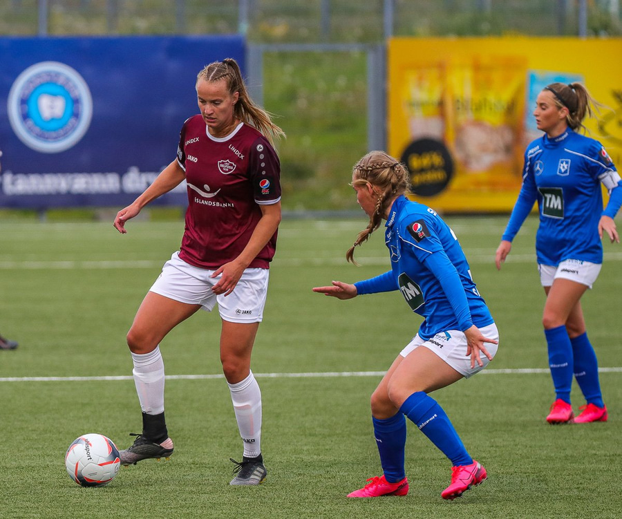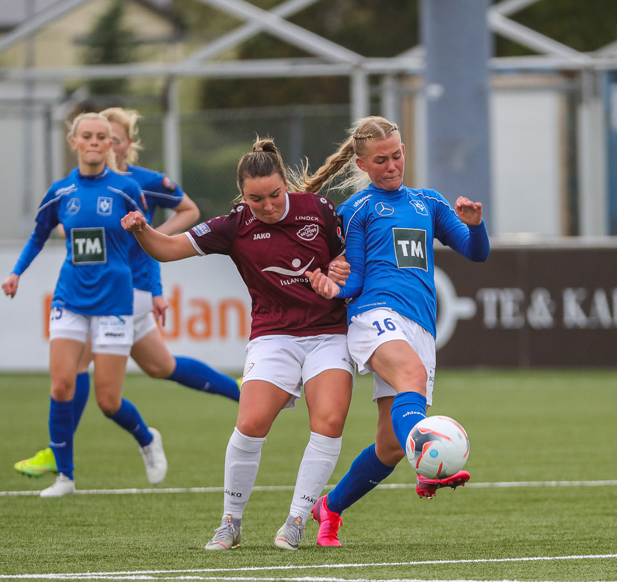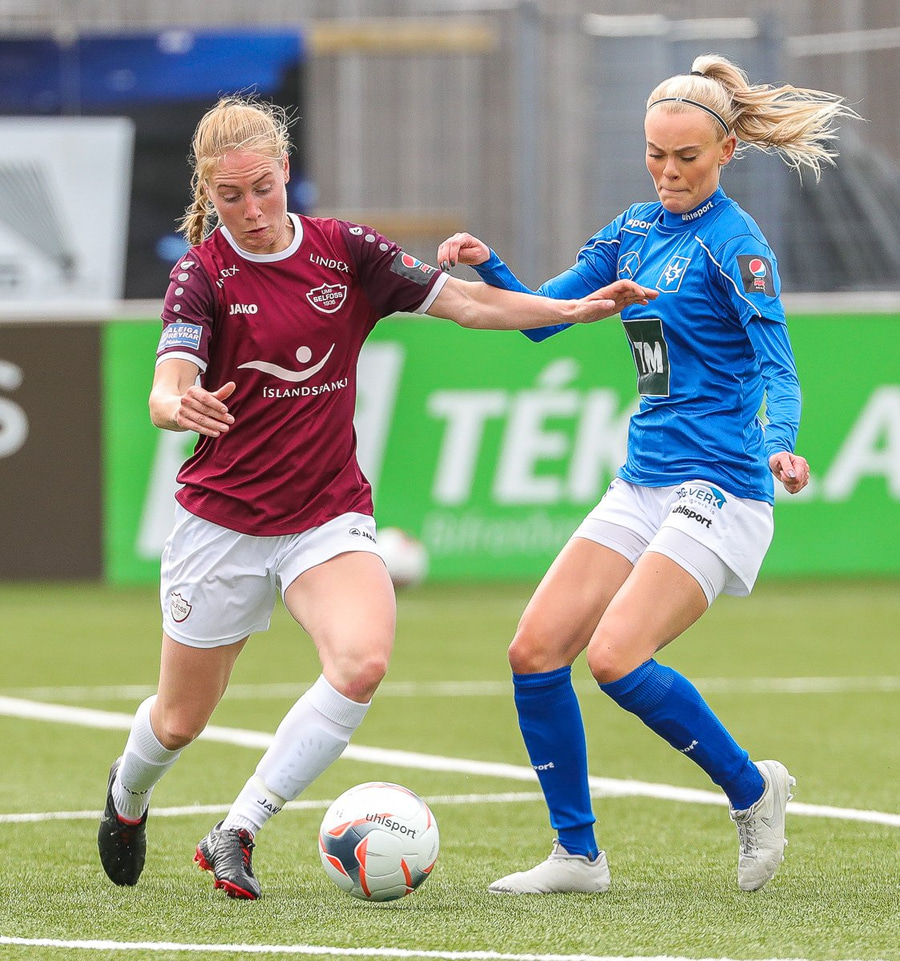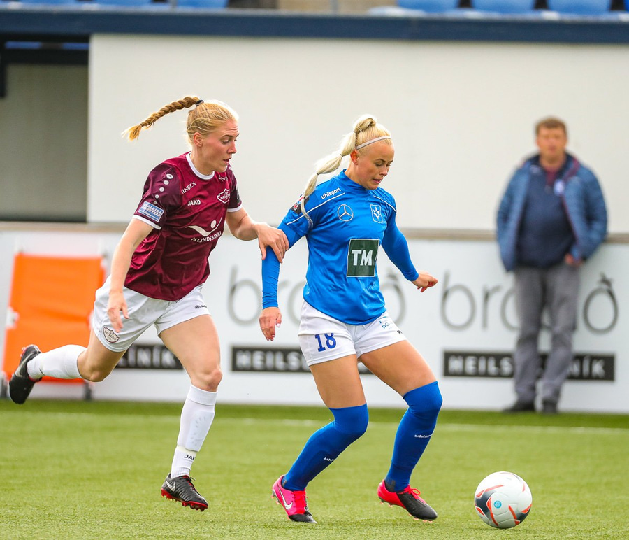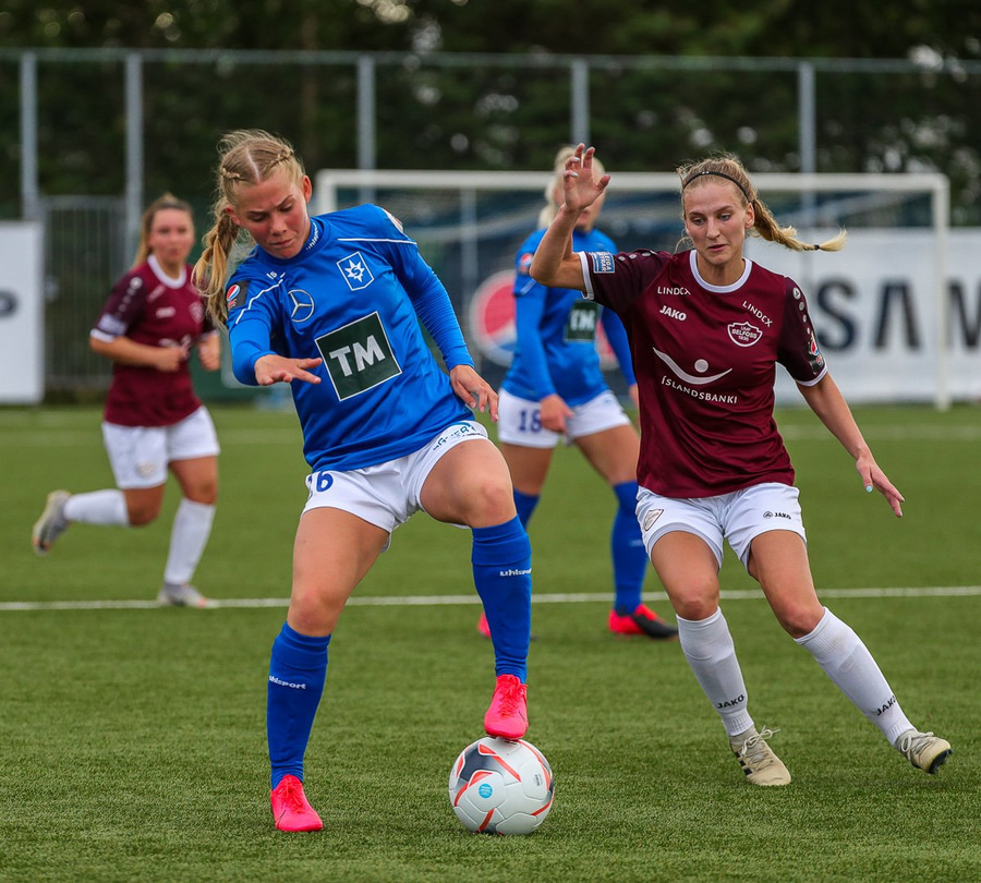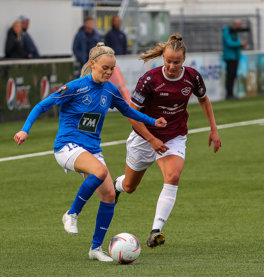 Jasmín tapar boltanum illa og Tiffany vinnur hann, sendir inn fyrir á Magdalenu sem klárar frábærlega fram hjá Birtu í markinu. Annað mark hennar í dag