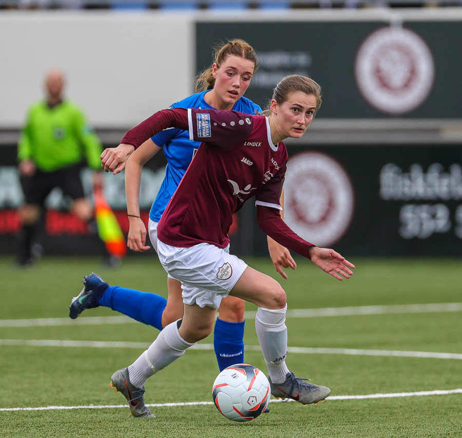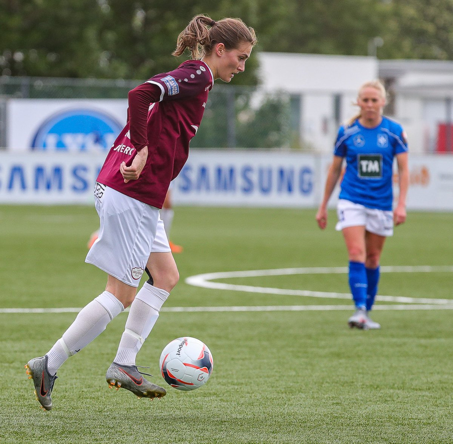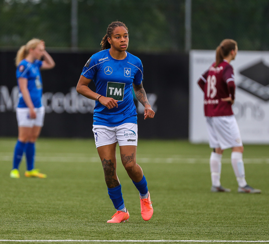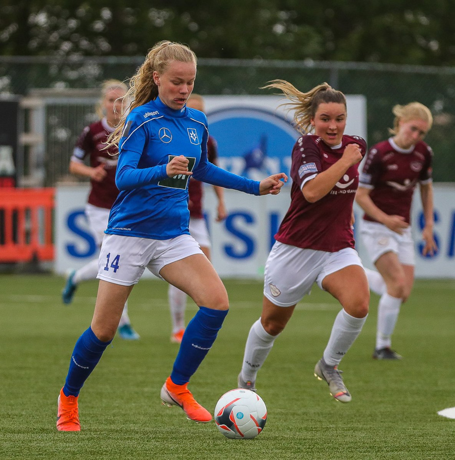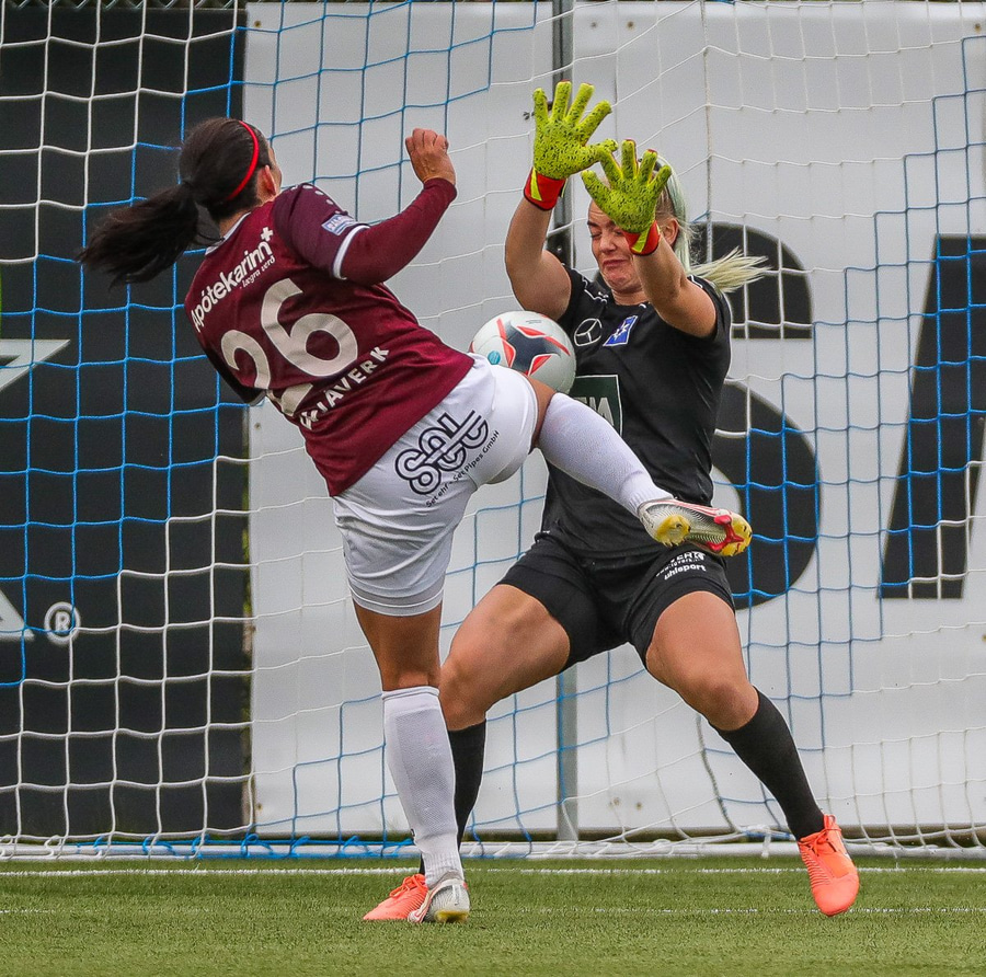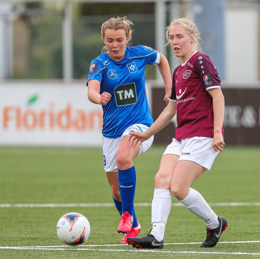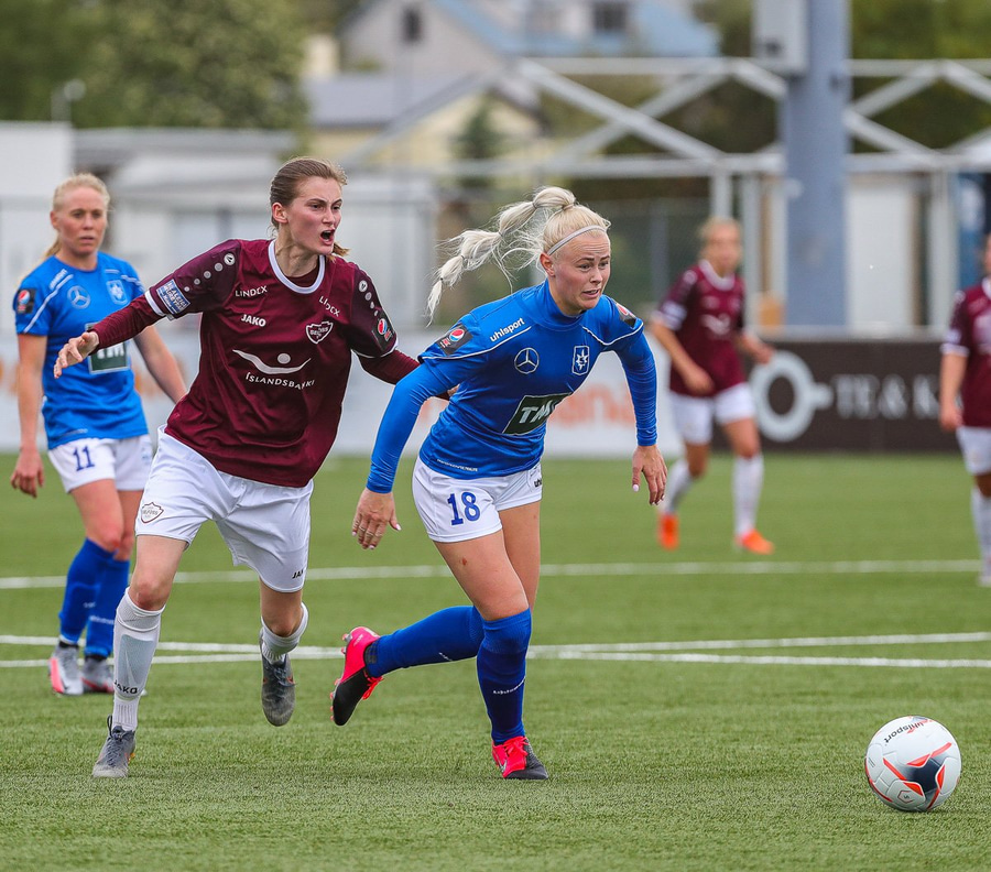 Jasmín tapar boltanum illa og Tiffany vinnur hann, sendir inn fyrir á Magdalenu sem klárar frábærlega fram hjá Birtu í markinu. Annað mark hennar í dag